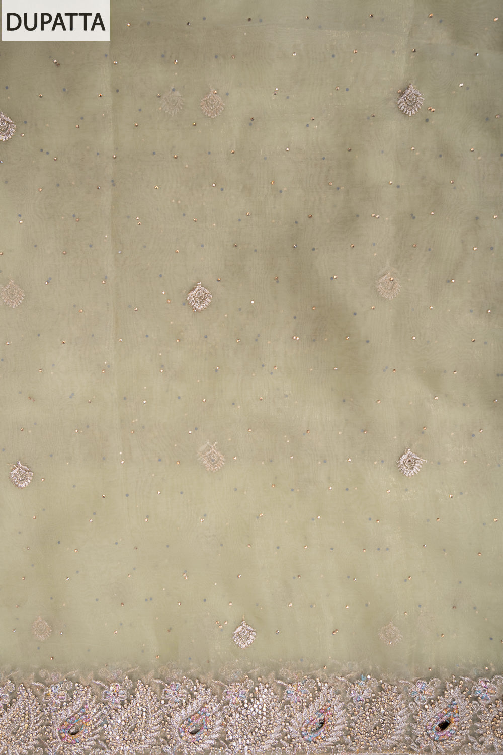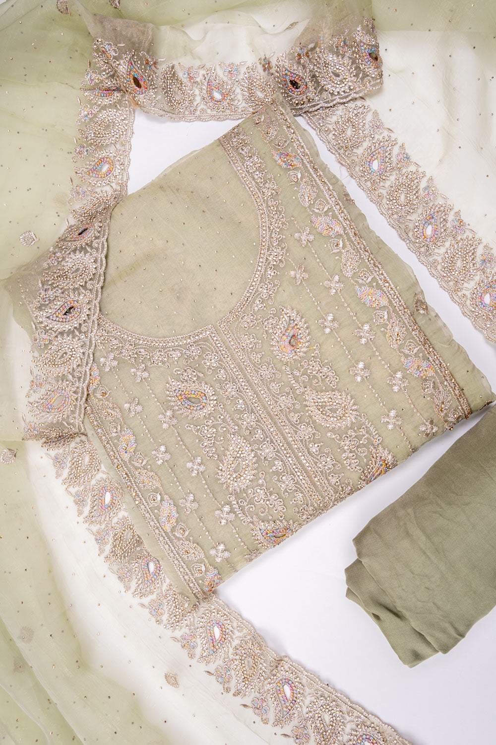 Panna Pista Organza Unstitched Salwar Suit With Organza Dupatta