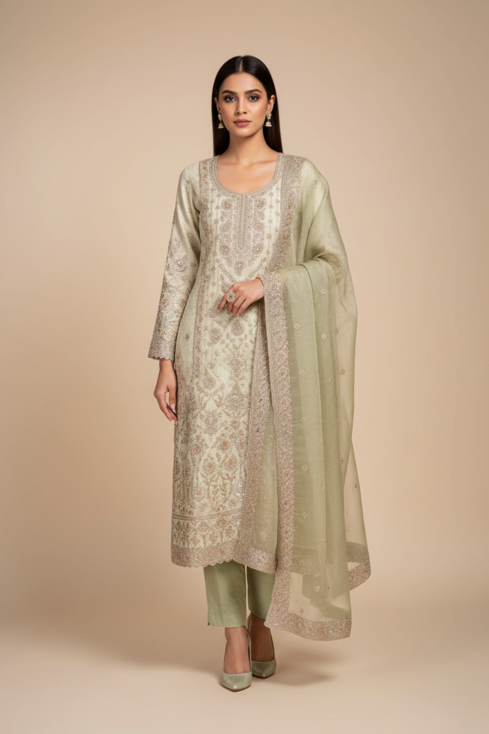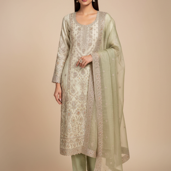 Pista Organza Unstitched Salwar Suit With Organza Dupatta – The Panna Shop