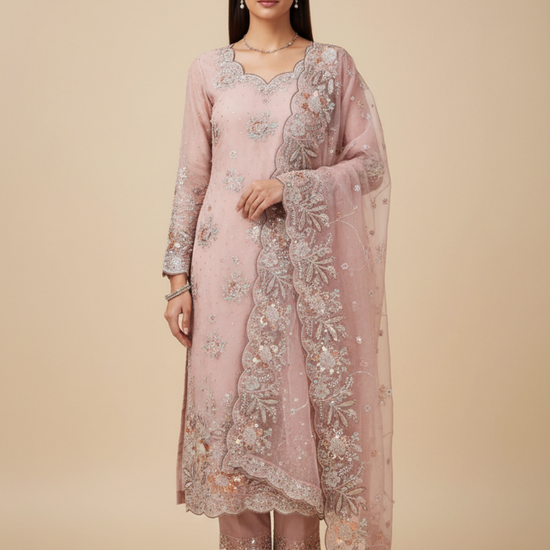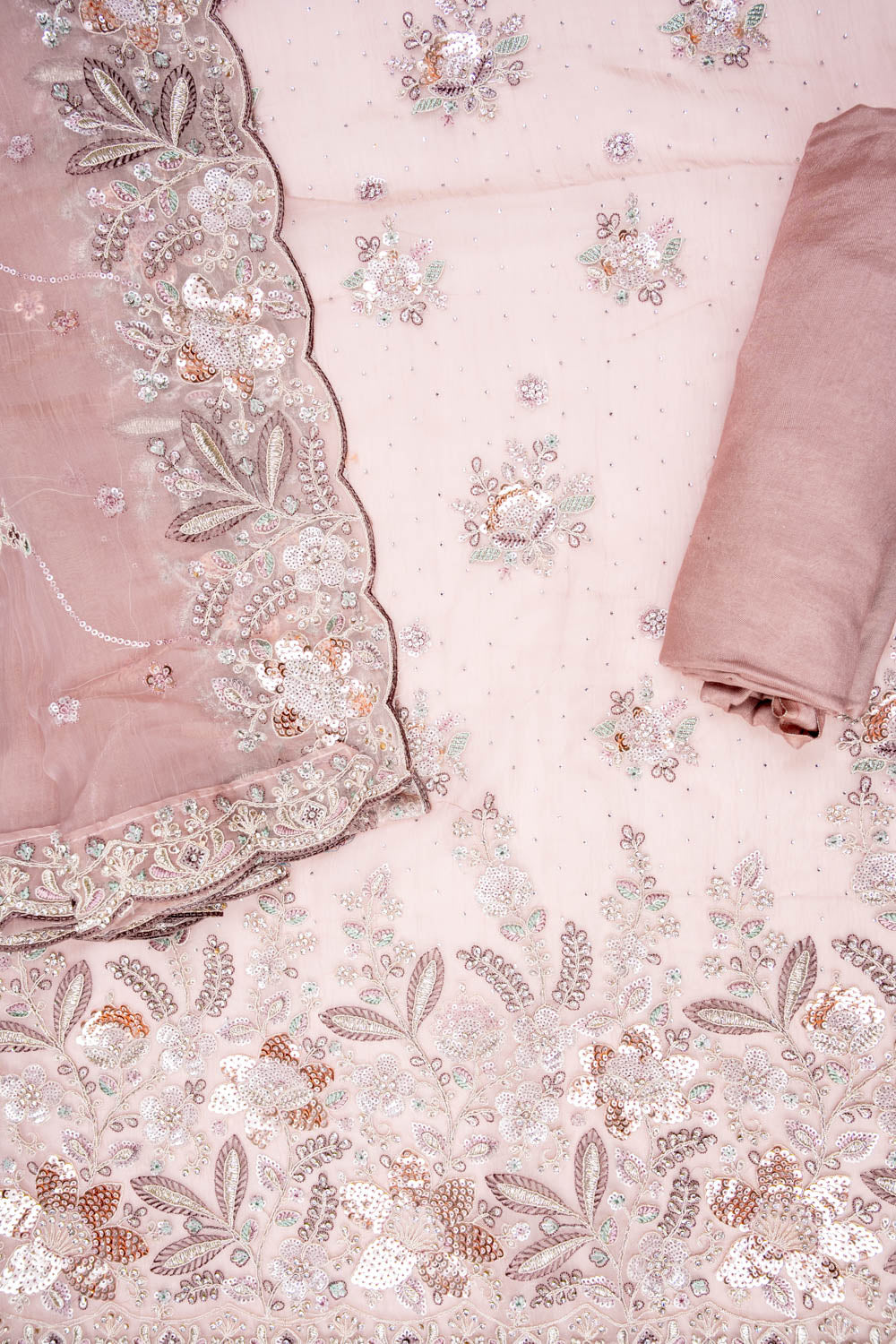 Featuring Sequence, Swarovski, Threadwork & Zari Threadwork, this Organza unstitched suit is perfect for Formal Occasion. The Color Variations and tailoring options offer unparalleled versatility. Preserve with Dry Wash / Dry Clean.