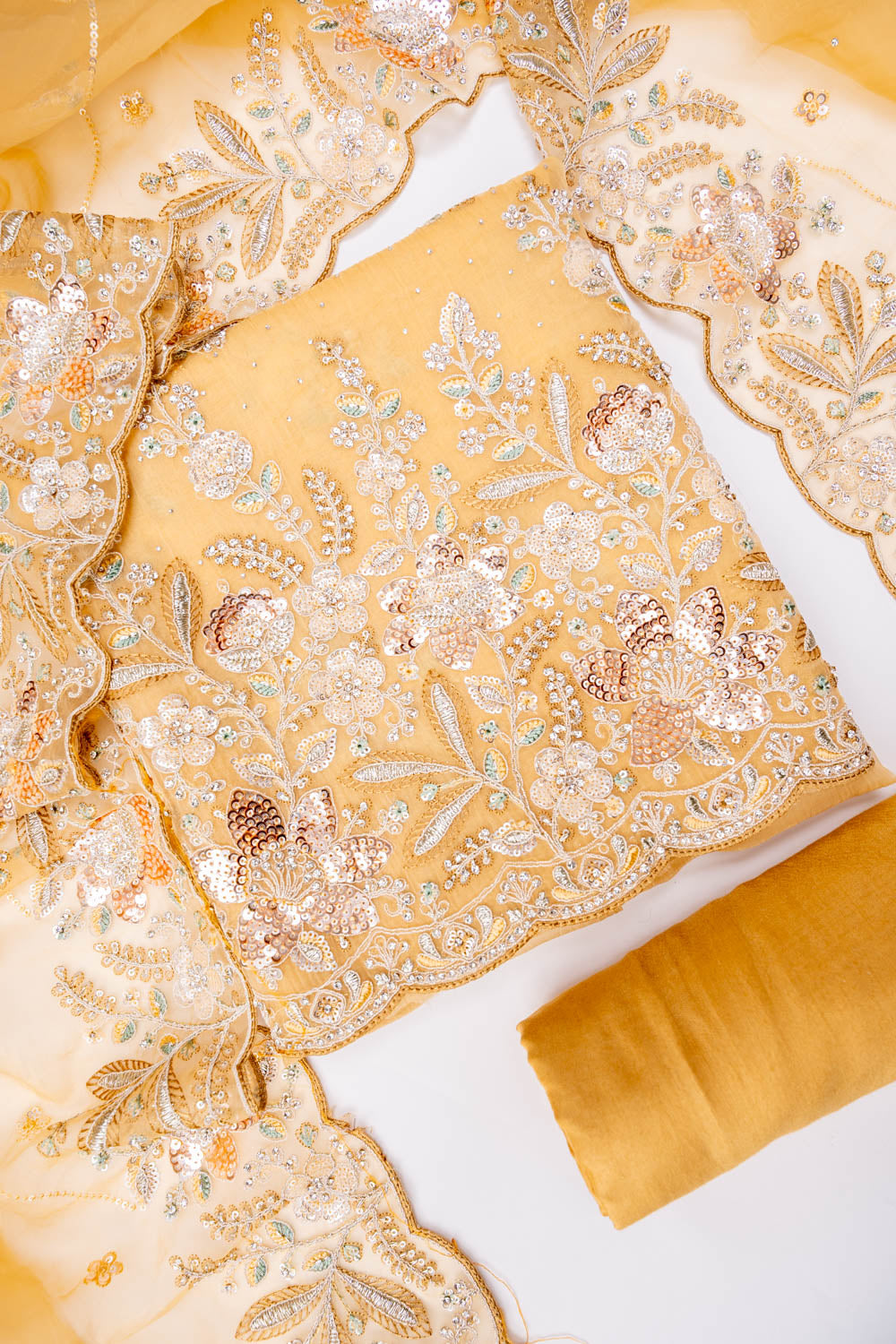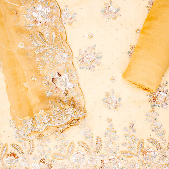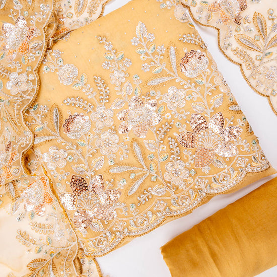 Panna Mango Gold Organza Unstitched Salwar Suit With Dupatta