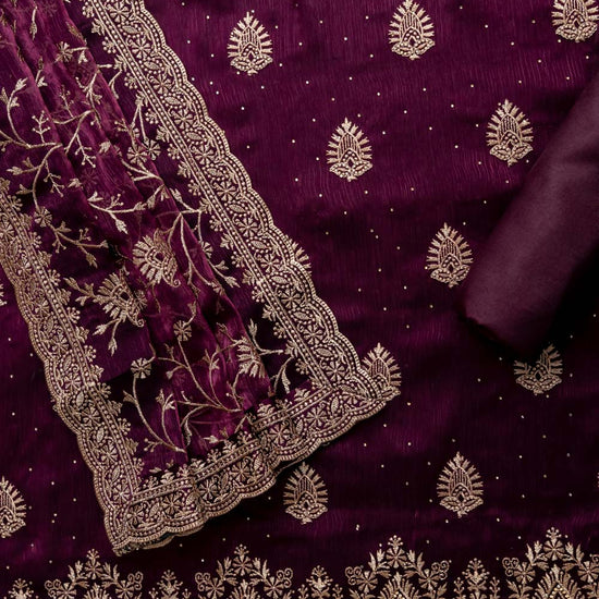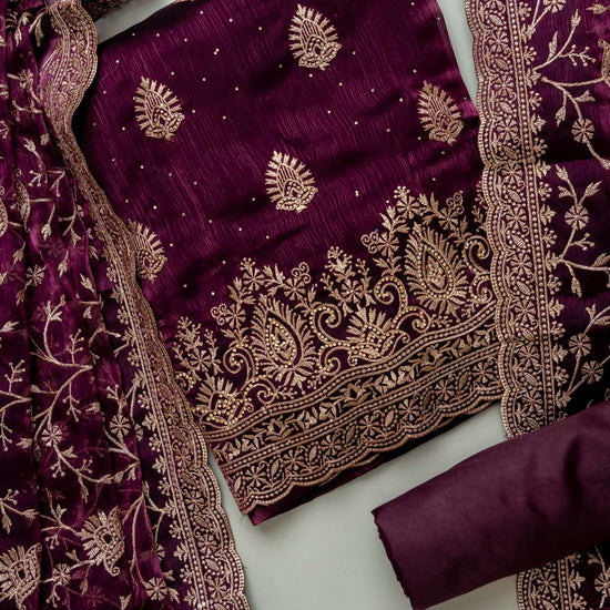 Deep Hues Wine Organza Unstitched  Salwar Kameez With Organza Dupatta