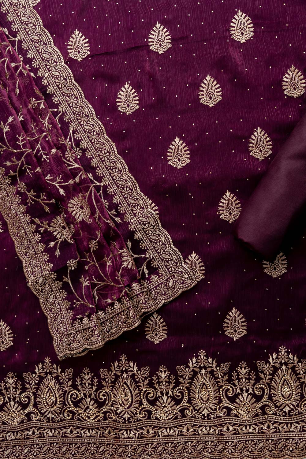 Deep Hues Wine Organza Unstitched Salwar Kameez With Organza Dupatta – The Panna Shop