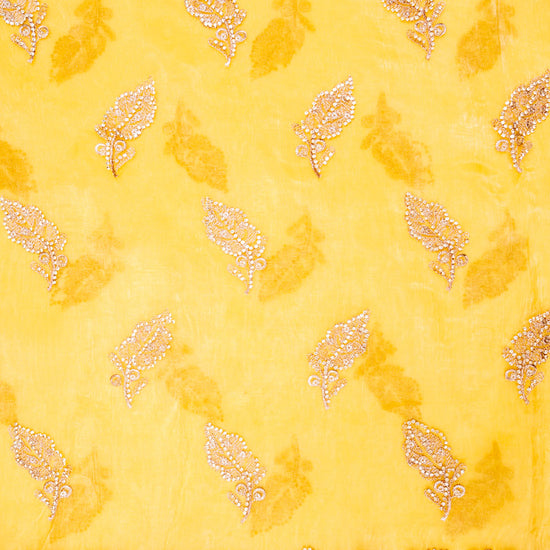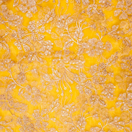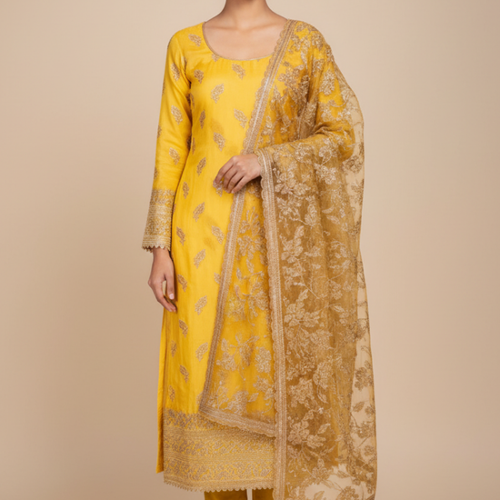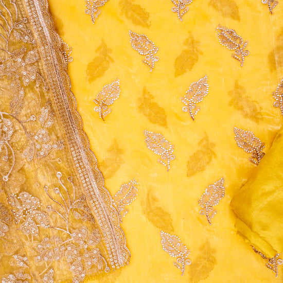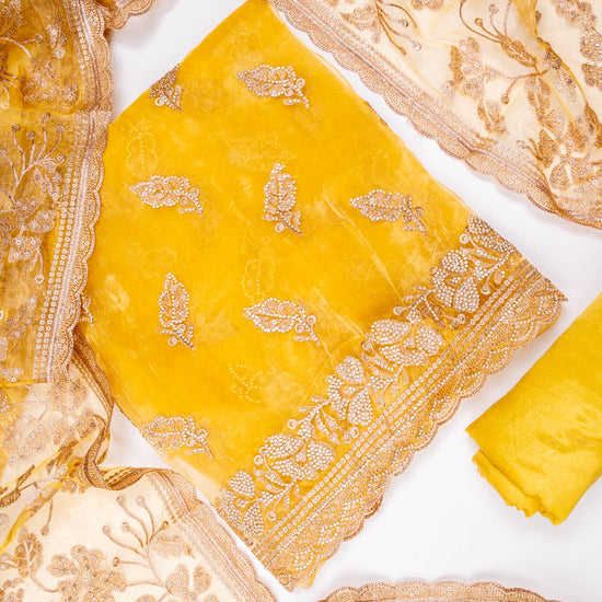 Panna Mango Gold Organza Unstitched Salwar Suit With Organza Dupatta