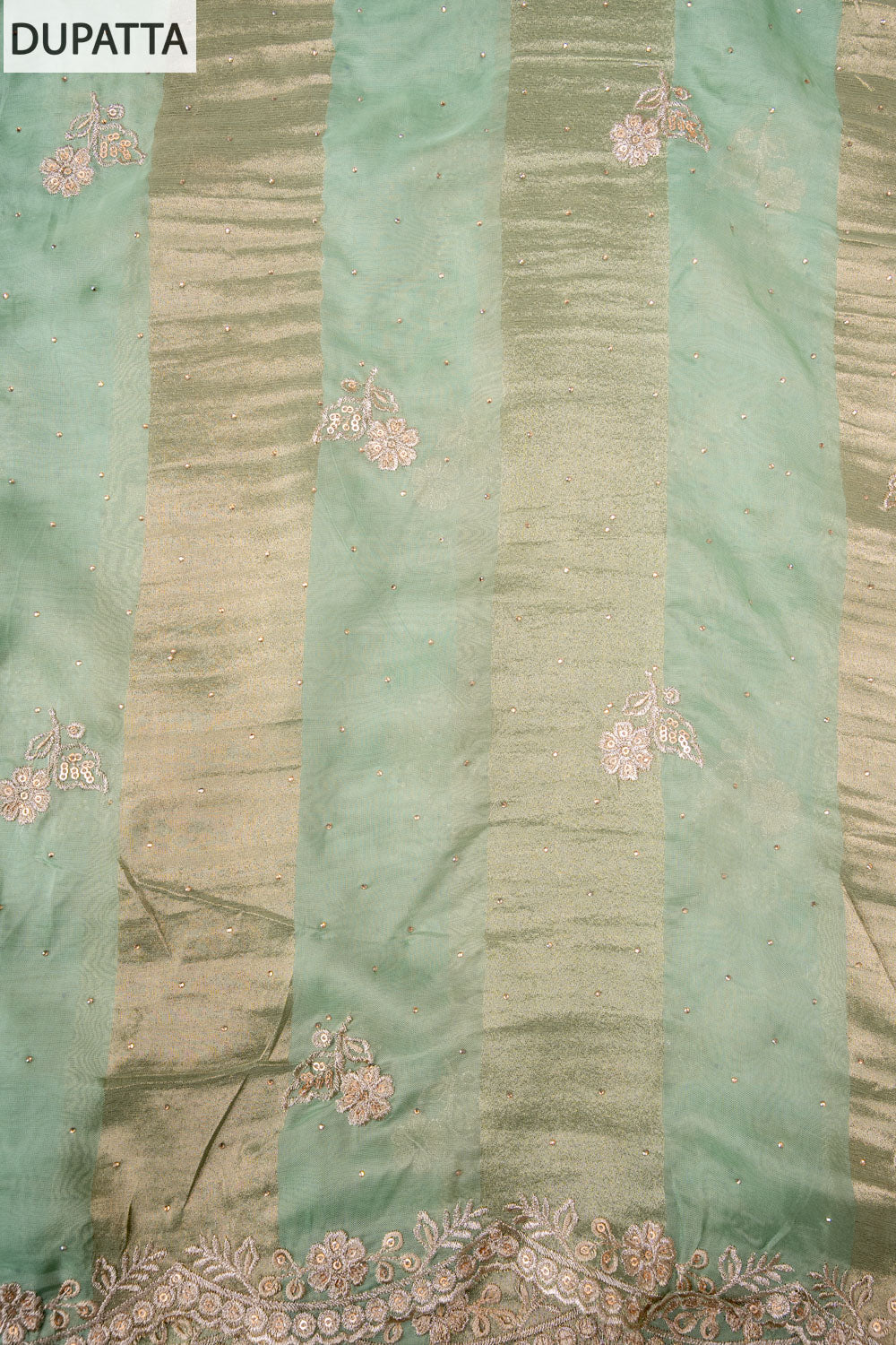 Mint Green Organza Unstitched Salwar Suit With Tissue Dupatta