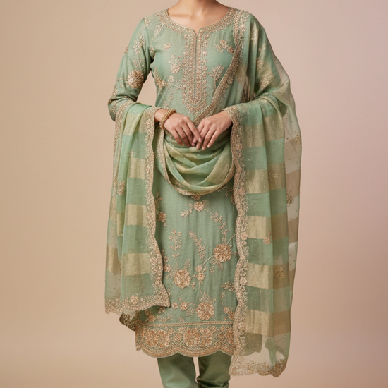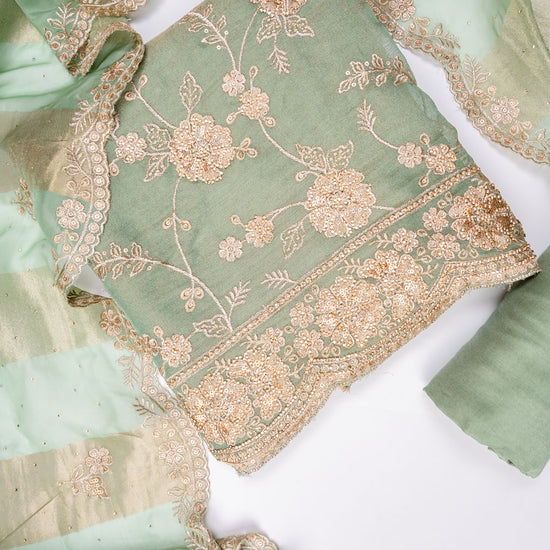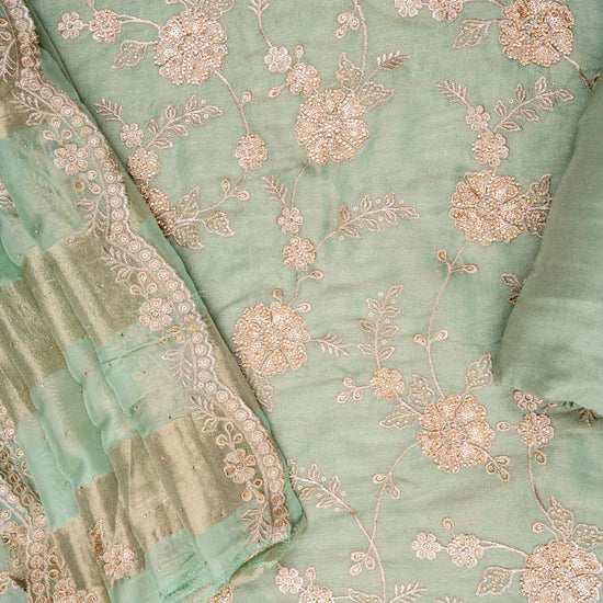 Mint Green Organza Unstitched Salwar Suit With Tissue Dupatta – The Panna Shop