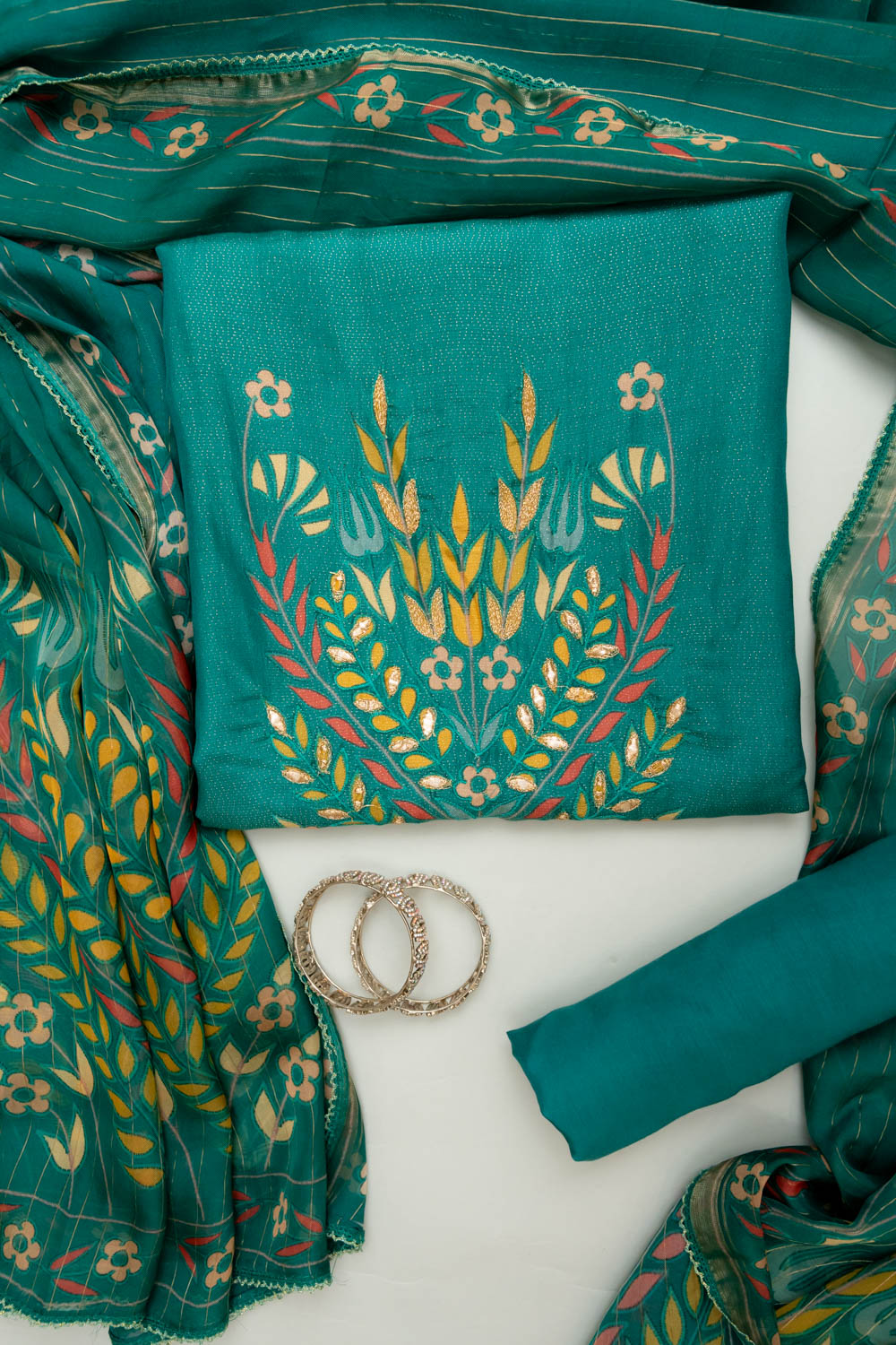 Panna Soft Hues Rama Shimmer Unstitched Salwar Kameez With Georgette Dupatta