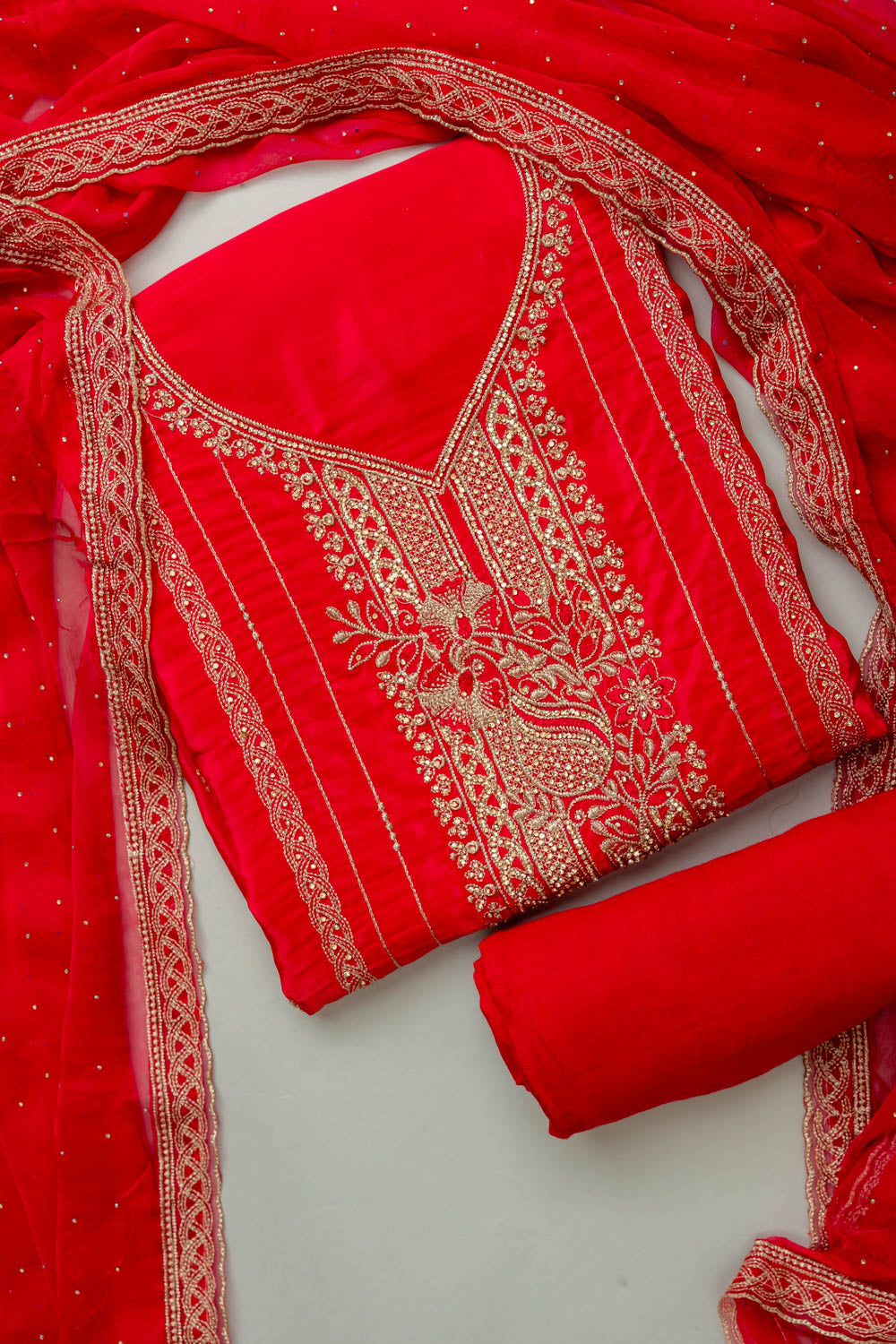 Redefine elegance with this stunning Crepe Unstitched Suit Set, crafted to bring together timeless tradition and contemporary charm. The soft, flowy crepe fabric offers a refined drape and effortless comfort, making it perfect for festive and occasion wear.
