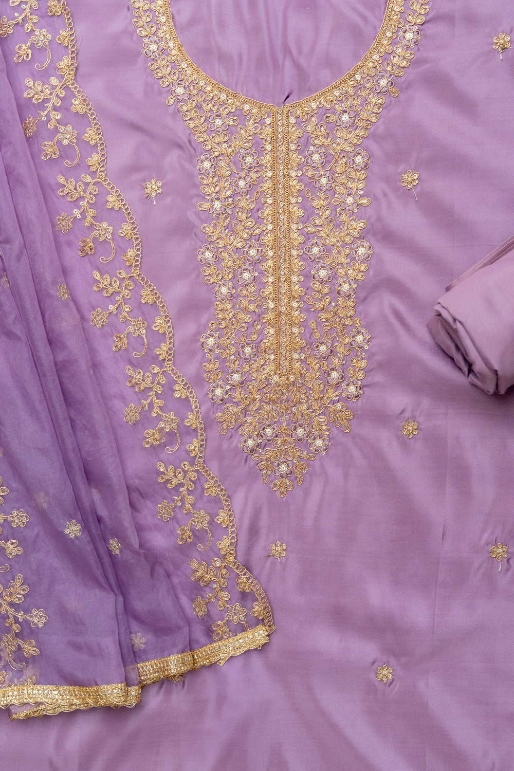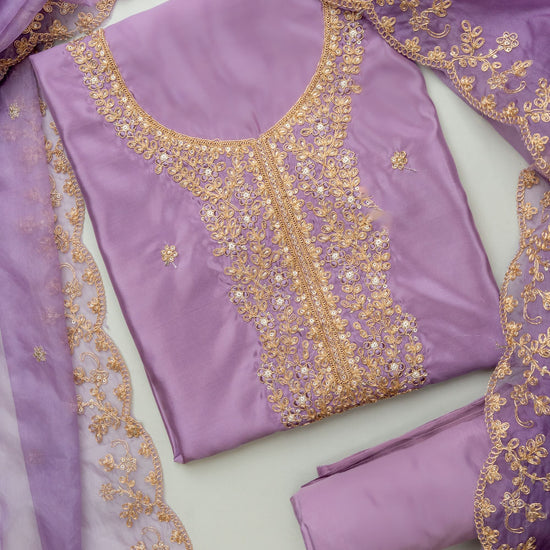 Panna Delicate And Dreamy Mauve Crepe Unstitched Salwar Kameez & Organza Dupatta