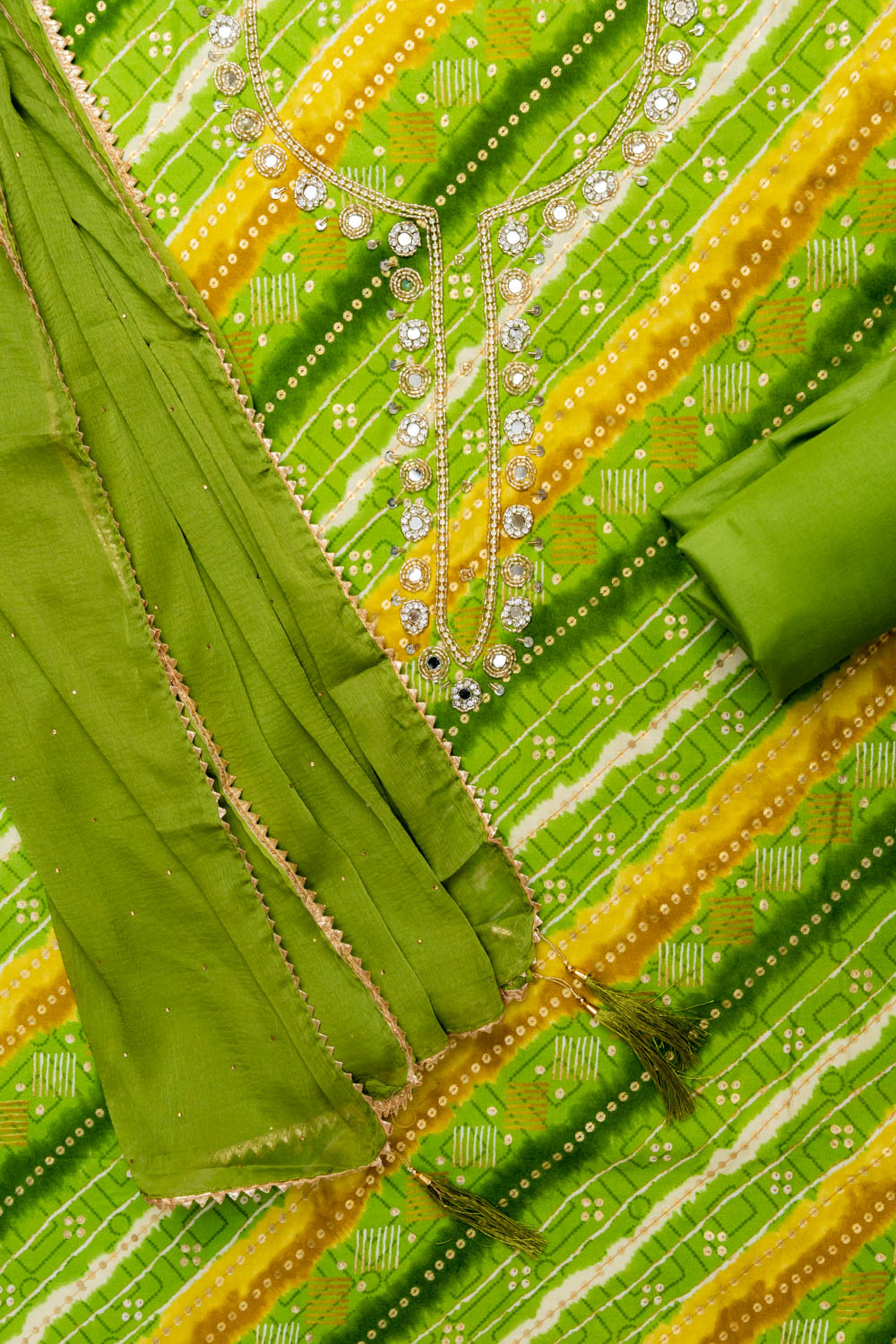 Panna Wrapped in Elegance Pista Cotton Unstitched Salwar Kameez & Chiffon Dupatta