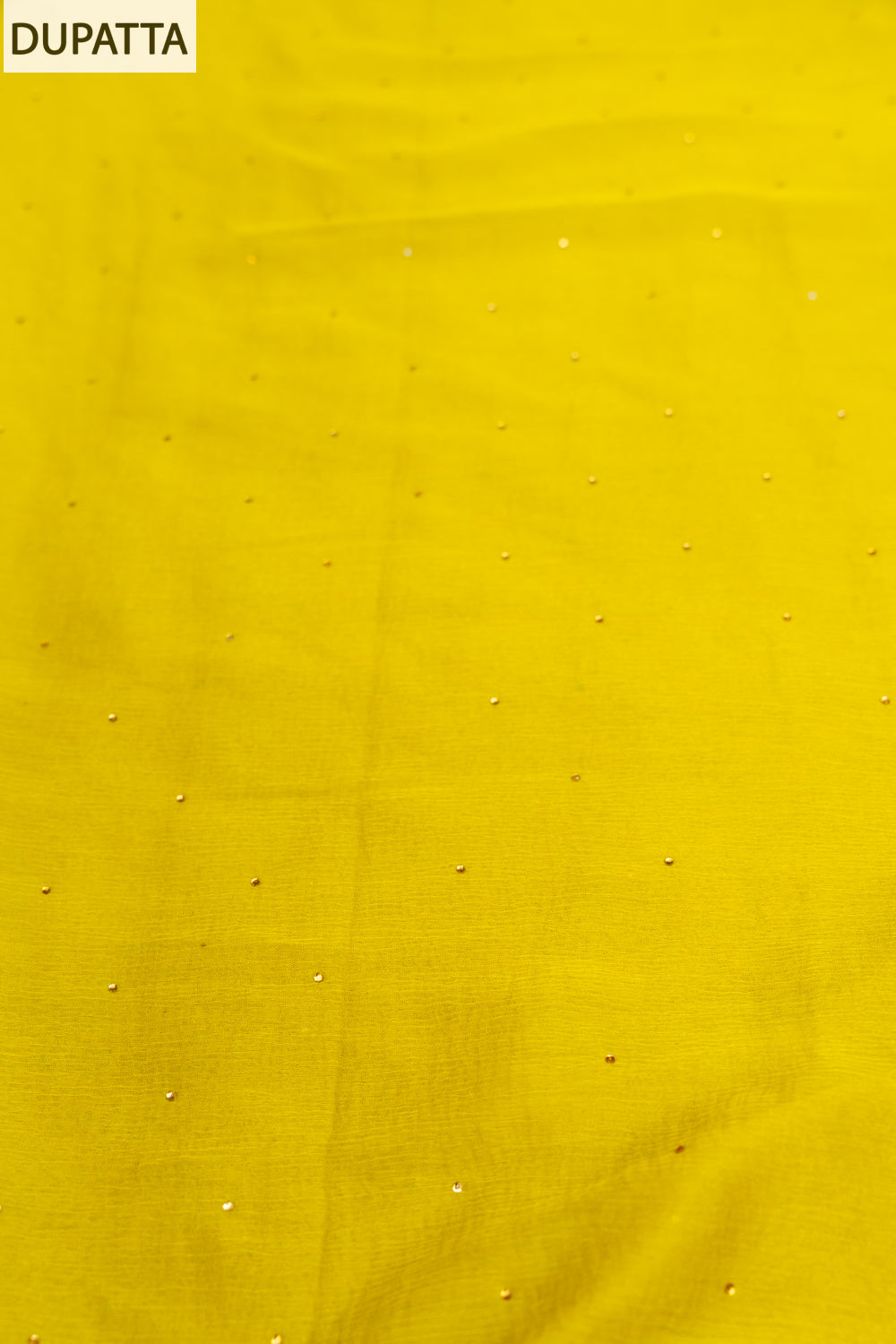 The highlight lies in its intricately Bandhani print reflects timeless Indian artistry. Enhanced with intricate Cutdana detailing, radiant Mirror work, delicate Sequence accents, and sparkling Zarkan embellishments, this ensemble exudes elegance with every detail.