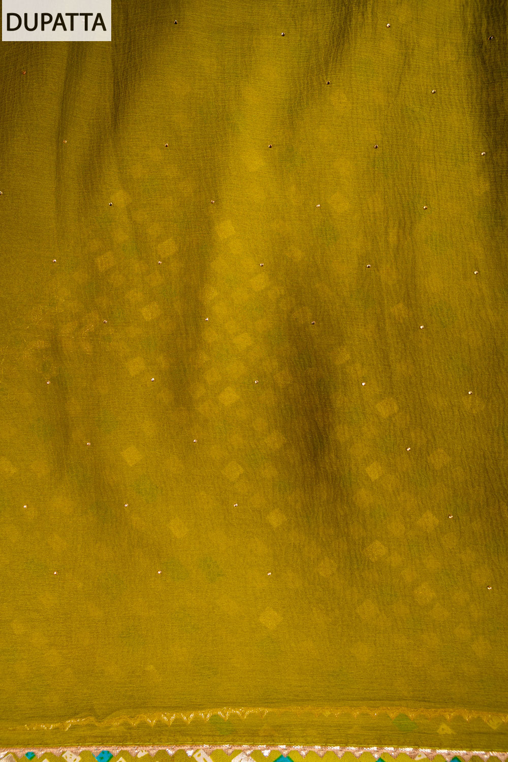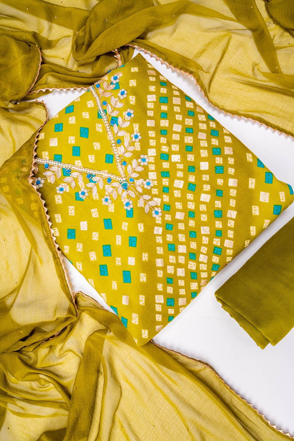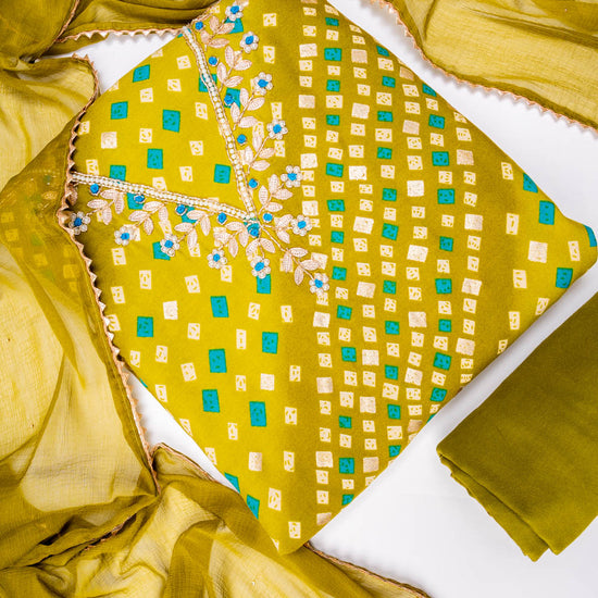 Panna Pista Cotton Unstitched Salwar Suit With Chiffon Dupatta