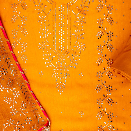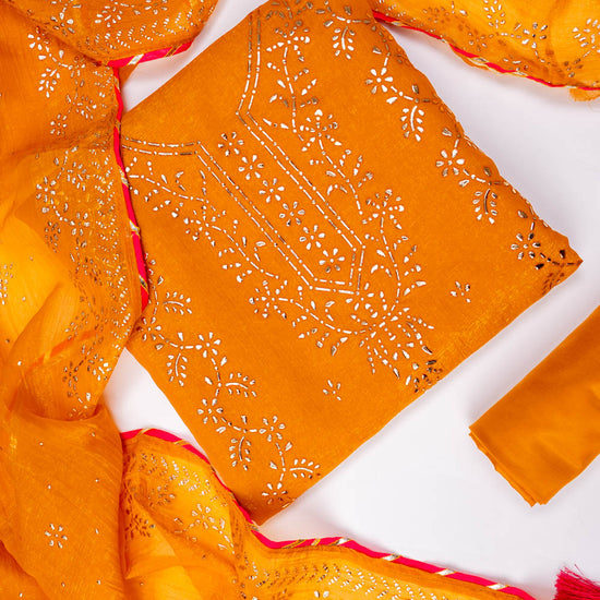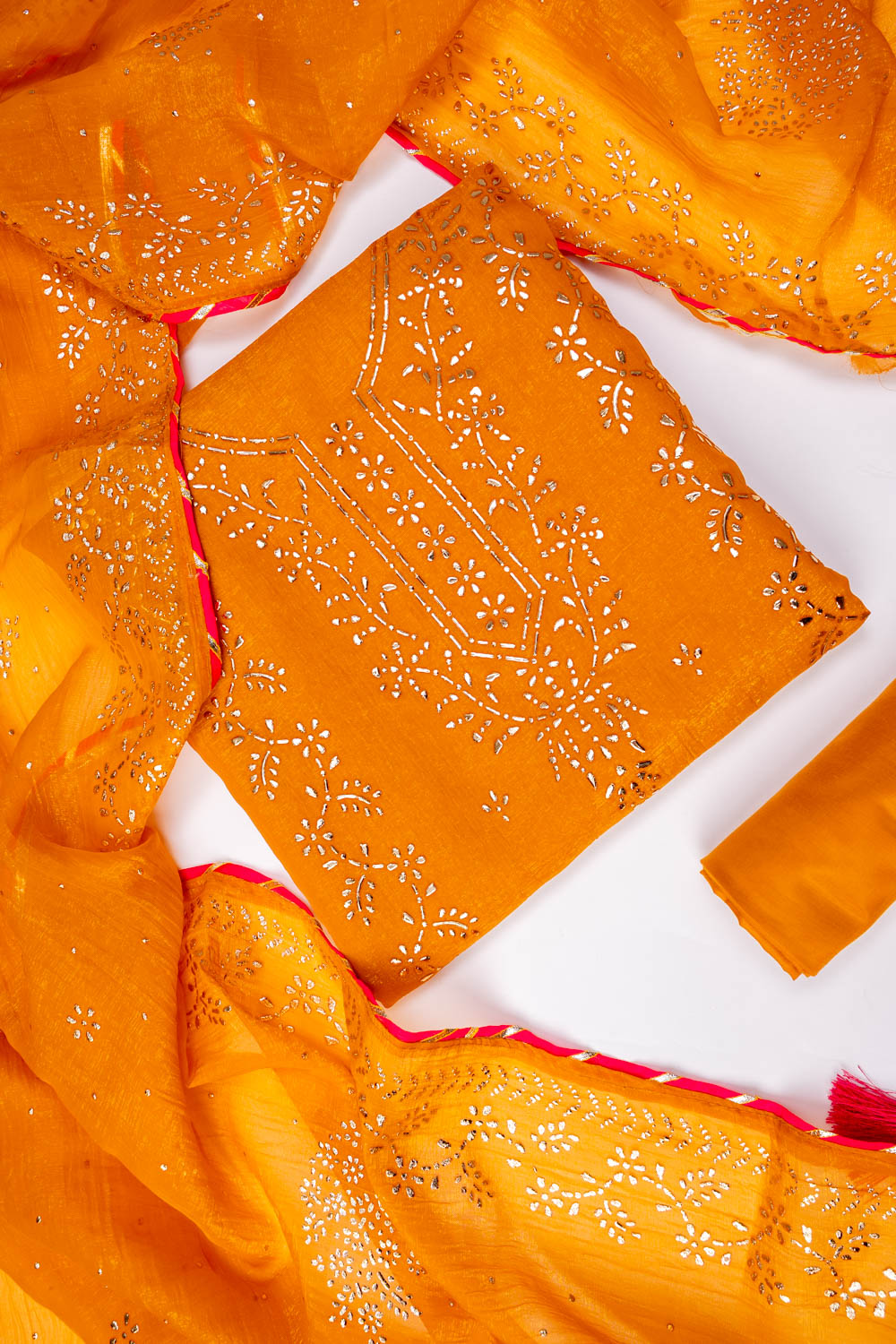 Panna Mustard Shimmer Unstitched Salwar Suit With Shimmer Dupatta