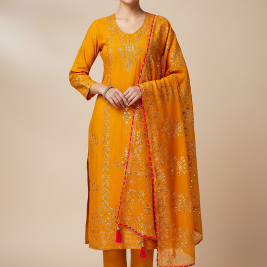 Suitable For : Formal occasions like weddings (including Haldi, Mehendi, Sangeet, Engagements, Receptions, and Anniversary Celebrations), grand festive gatherings, corporate events, milestone celebrations like 50th birthdays, and traditional family functions such as baby showers or housewarming ceremonies are perfect for wearing more elaborate attire.