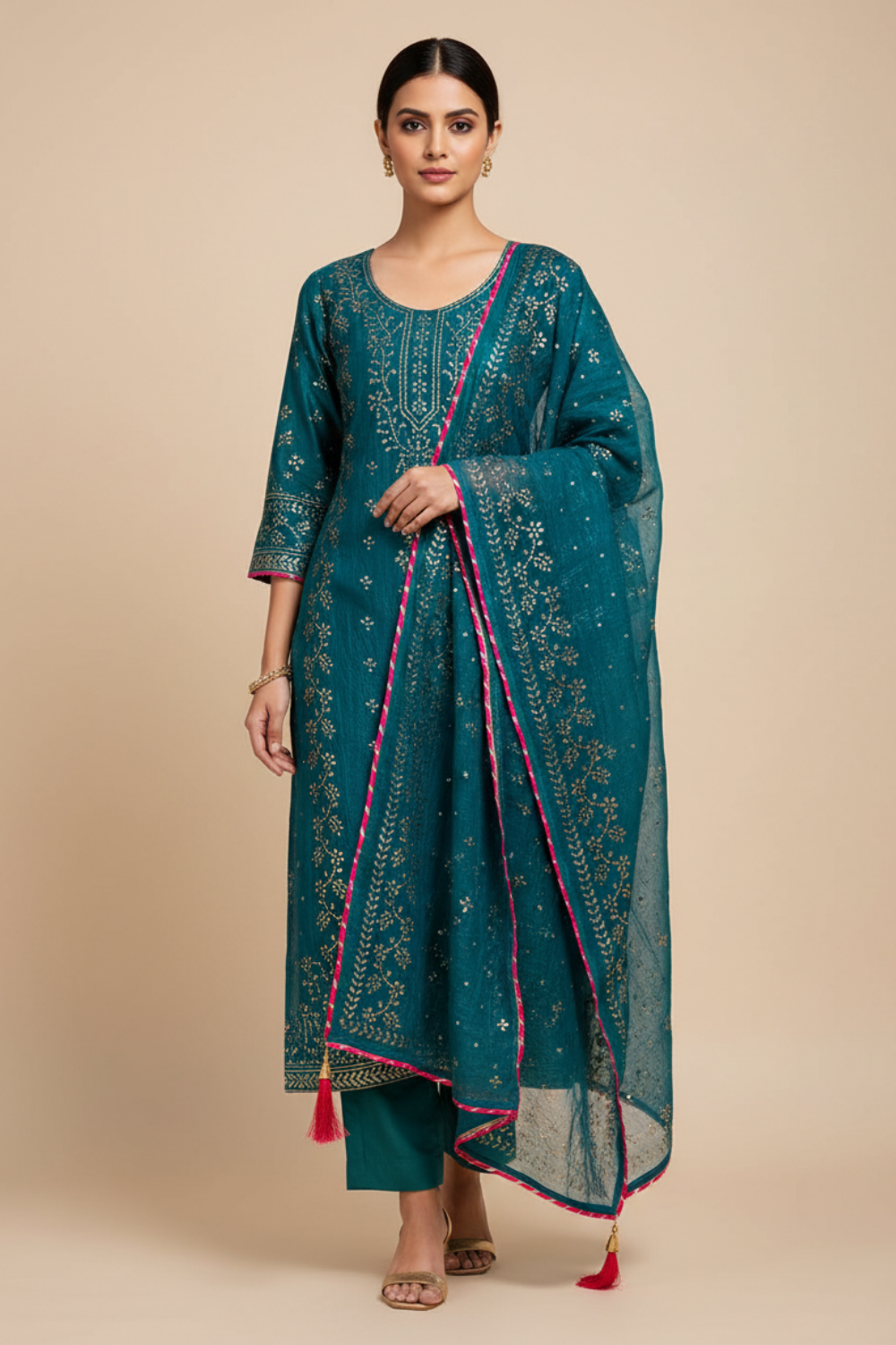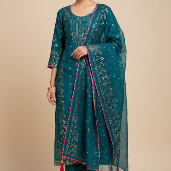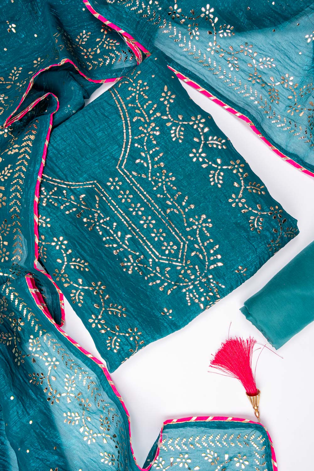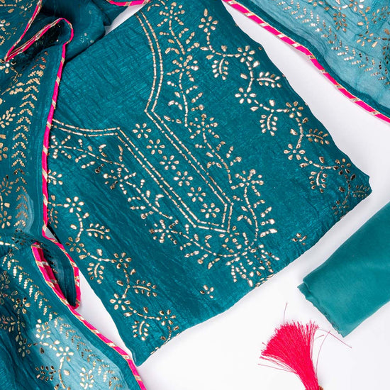 Panna Rama Shimmer Unstitched Salwar Suit With Shimmer Dupatta