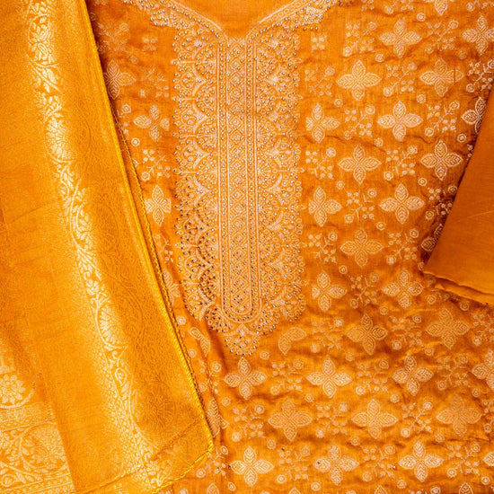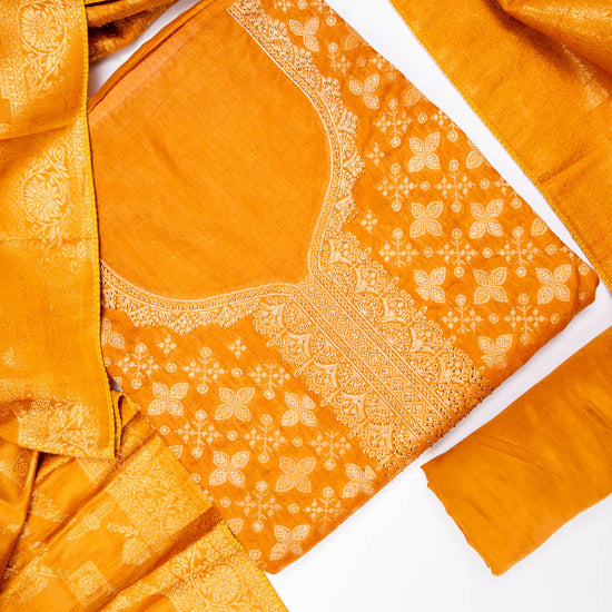Mustard Cotton Unstitched Salwar Suit With Cotton Dupatta