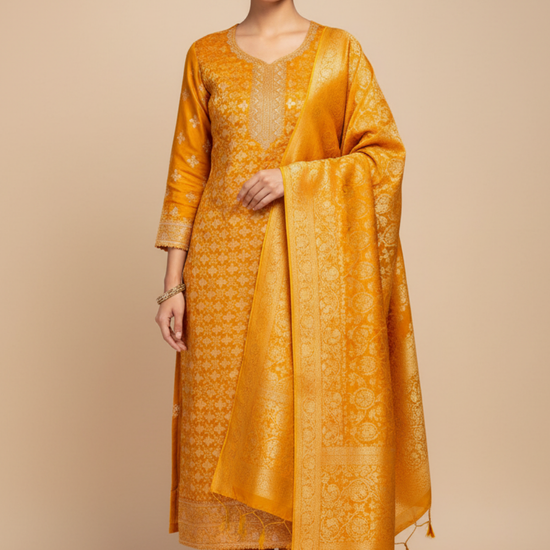Mustard Cotton Unstitched Salwar Suit With Cotton Dupatta – The Panna Shop