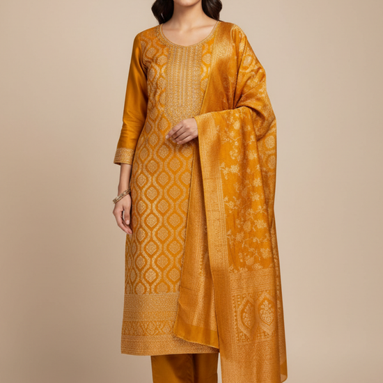 Panna Mustard Cotton Unstitched Salwar Suit With Cotton Dupatta