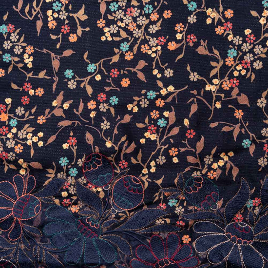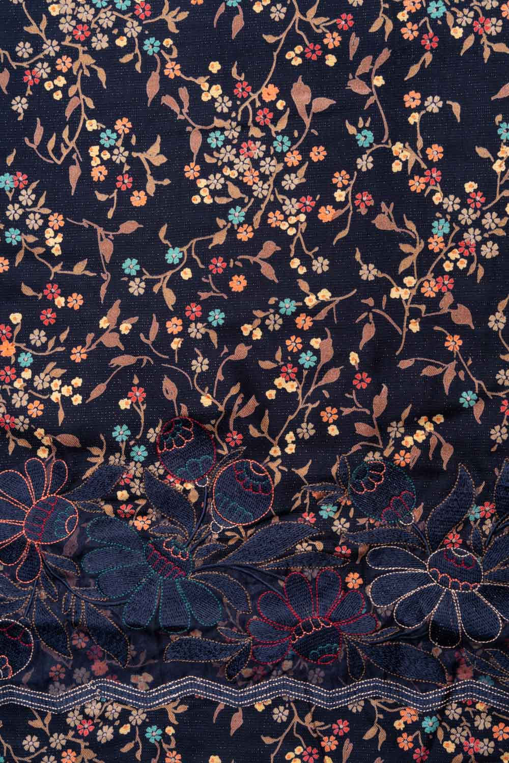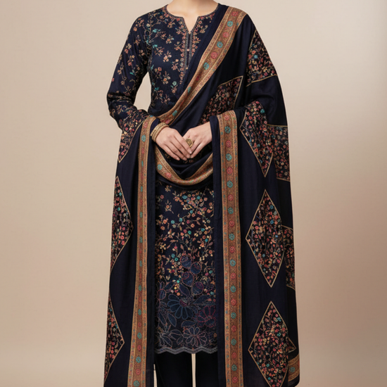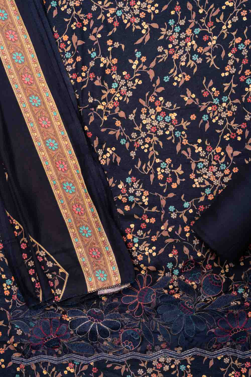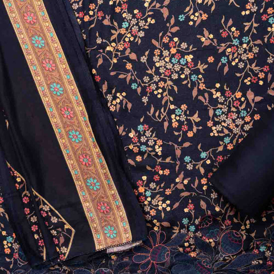 Panna Navy Blue Pashmina Unstitched Salwar Suit With Pashmina Dupatta