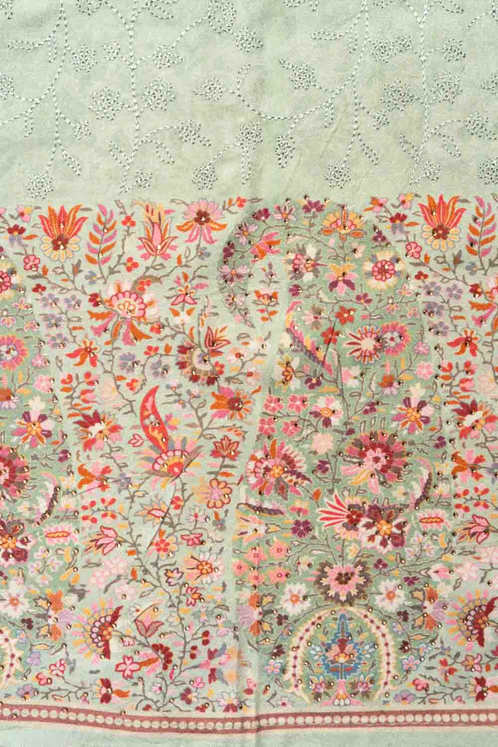 Mint Green Pashmina Unstiched Salwar Suit With Pashmina Dupatta