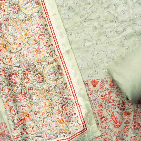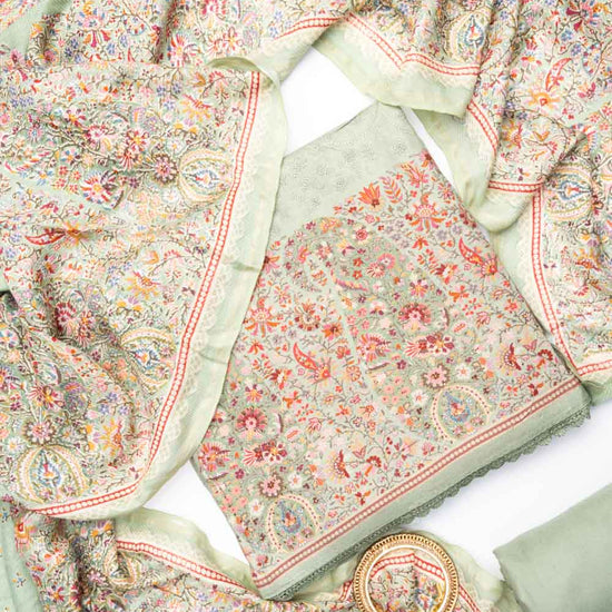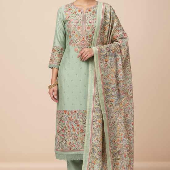 Mint Green Pashmina Unstiched Salwar Suit With Pashmina Dupatta – The Panna Shop