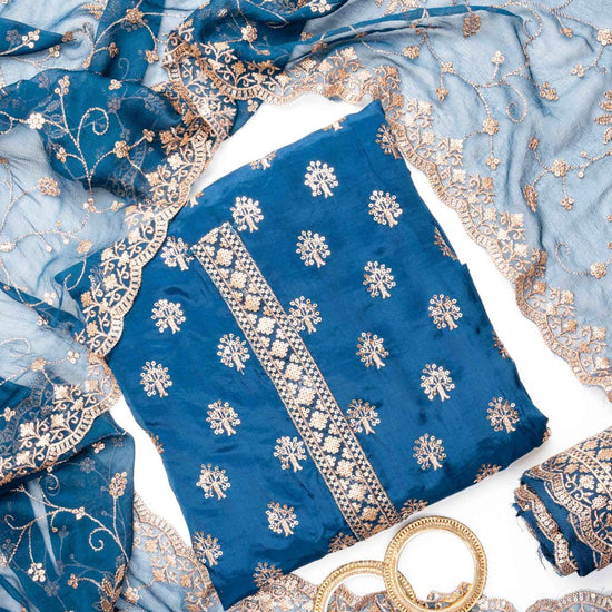 Panna Peacock Organza Unstitched Salwar Suit With Chiffon Dupatta
