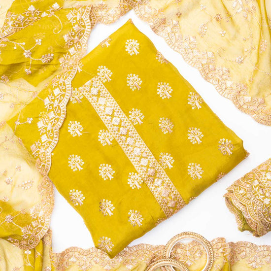 Panna Pista Organza Unstitched Salwar Suit With Chiffon Dupatta