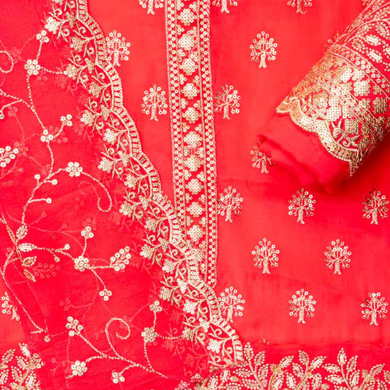 With intricate Sequence & Zari Threadwork on luxurious Organza, this unstitched suit is tailored for Formal Occasion. The Color Variations make it versatile. Keep it flawless with Dry Wash / Dry Clean.
