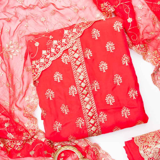 Panna Rani Organza Unstitched Salwar Suit With Chiffon Dupatta