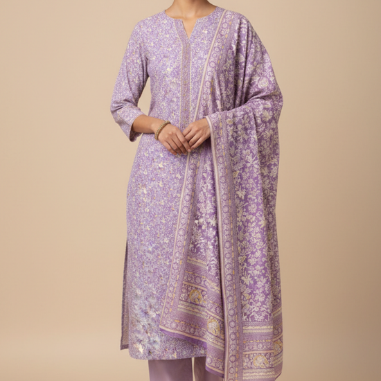 Mauve Pashmina Unstiched Salwar Suit With Pashmina Dupatta – The Panna Shop