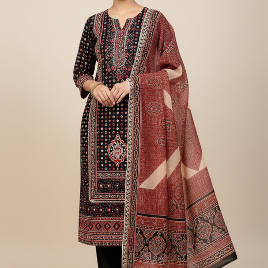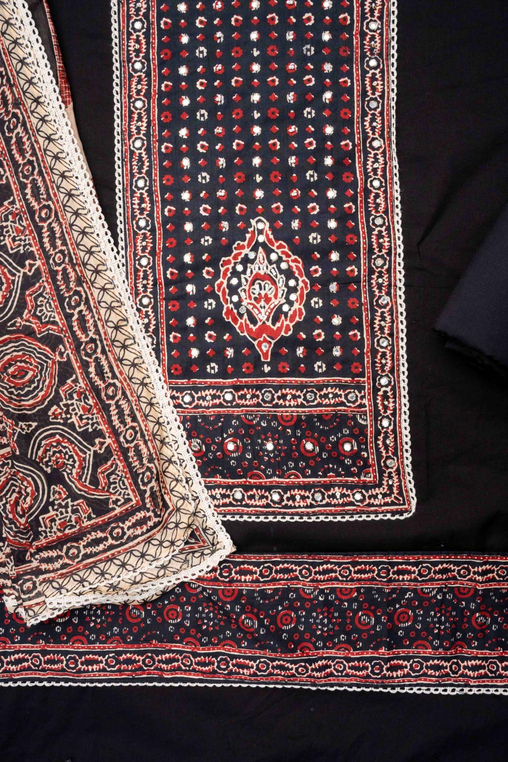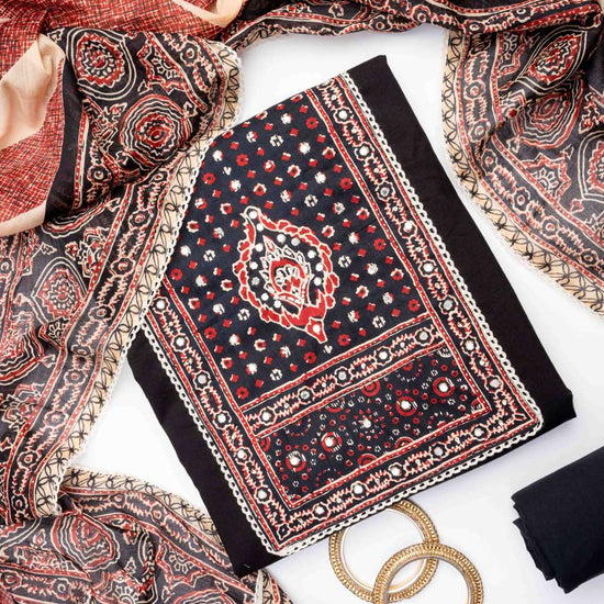 Black Cotton Unstitched Salwar Suit With Cotton Dupatta – The Panna Shop