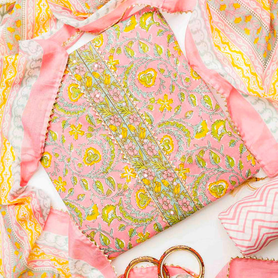 Panna Gajari Cotton Unstitched Salwar Suit With Cotton Dupatta