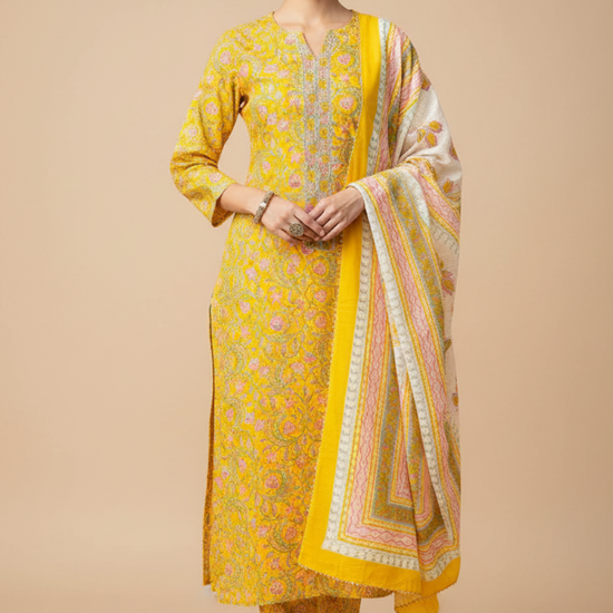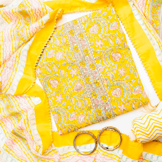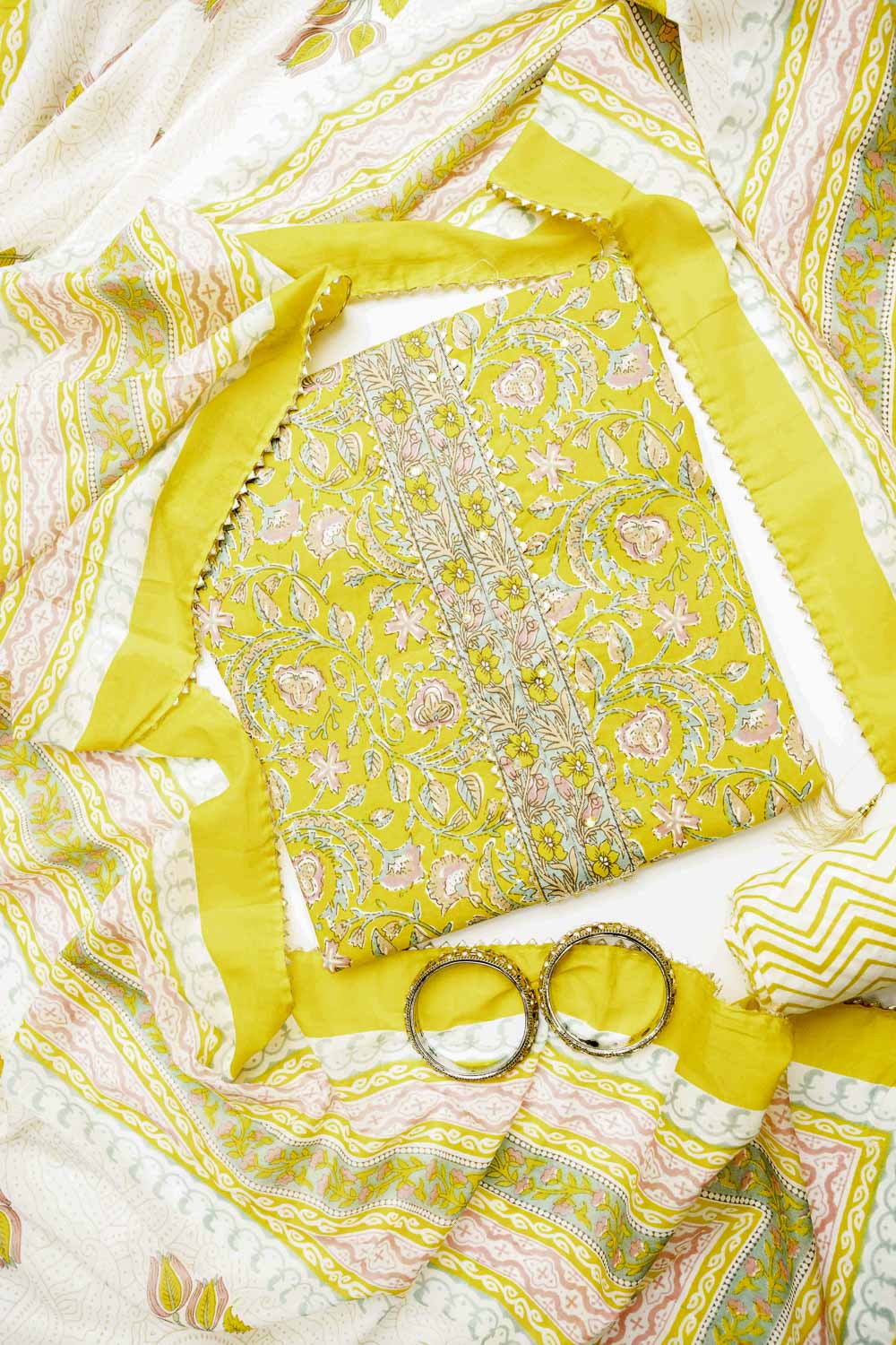 Panna Mustard Cotton Unstitched Salwar Suit With Cotton Dupatta