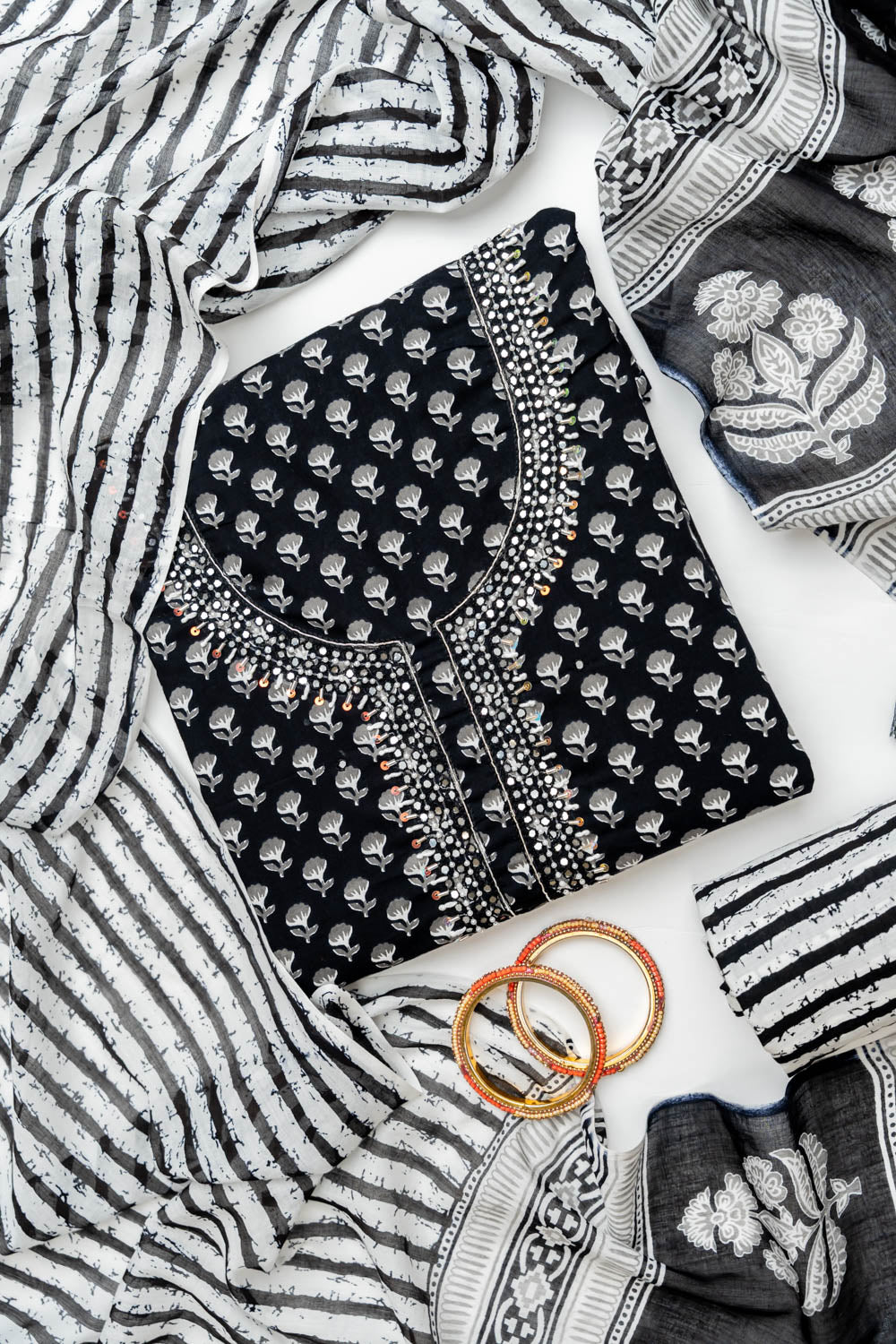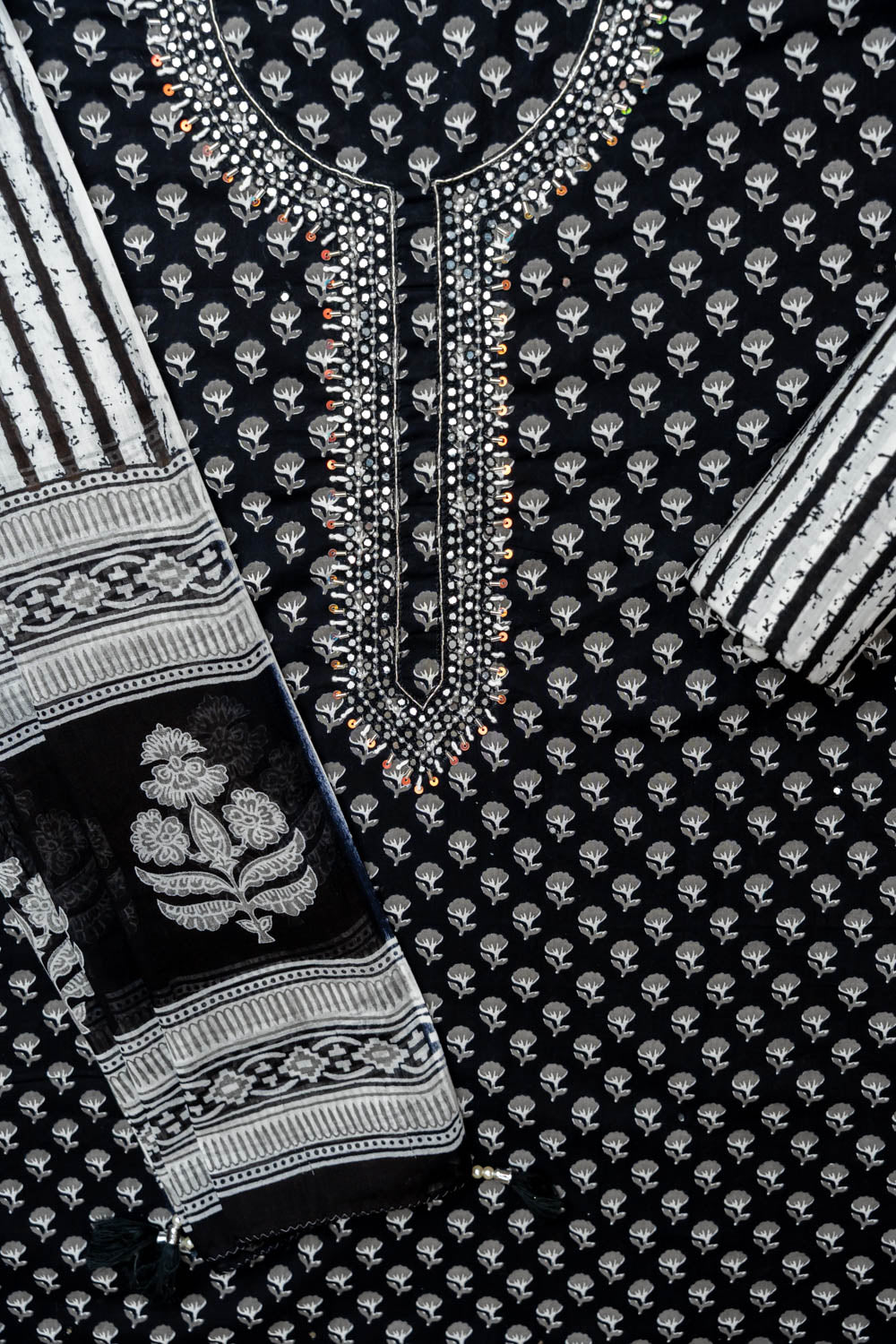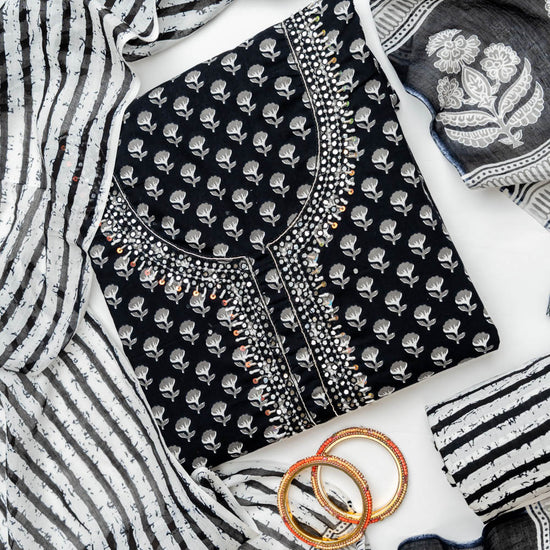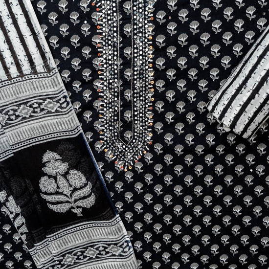 Panna Black Cotton Unstitched Salwar Suit With Cotton Dupatta