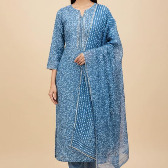 Panna Blue Grey Cotton Unstitched Salwar Suit With Cotton Dupatta