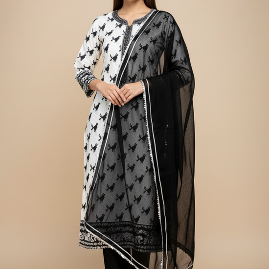 Panna Black Cotton Unstitched Salwar Suit With Cotton Dupatta