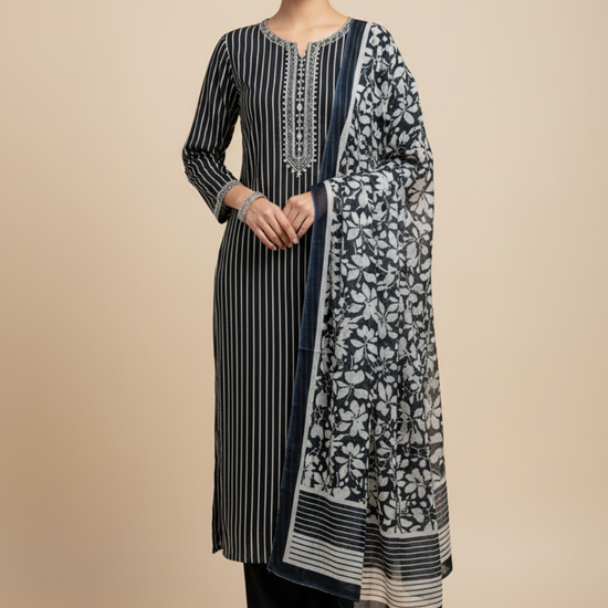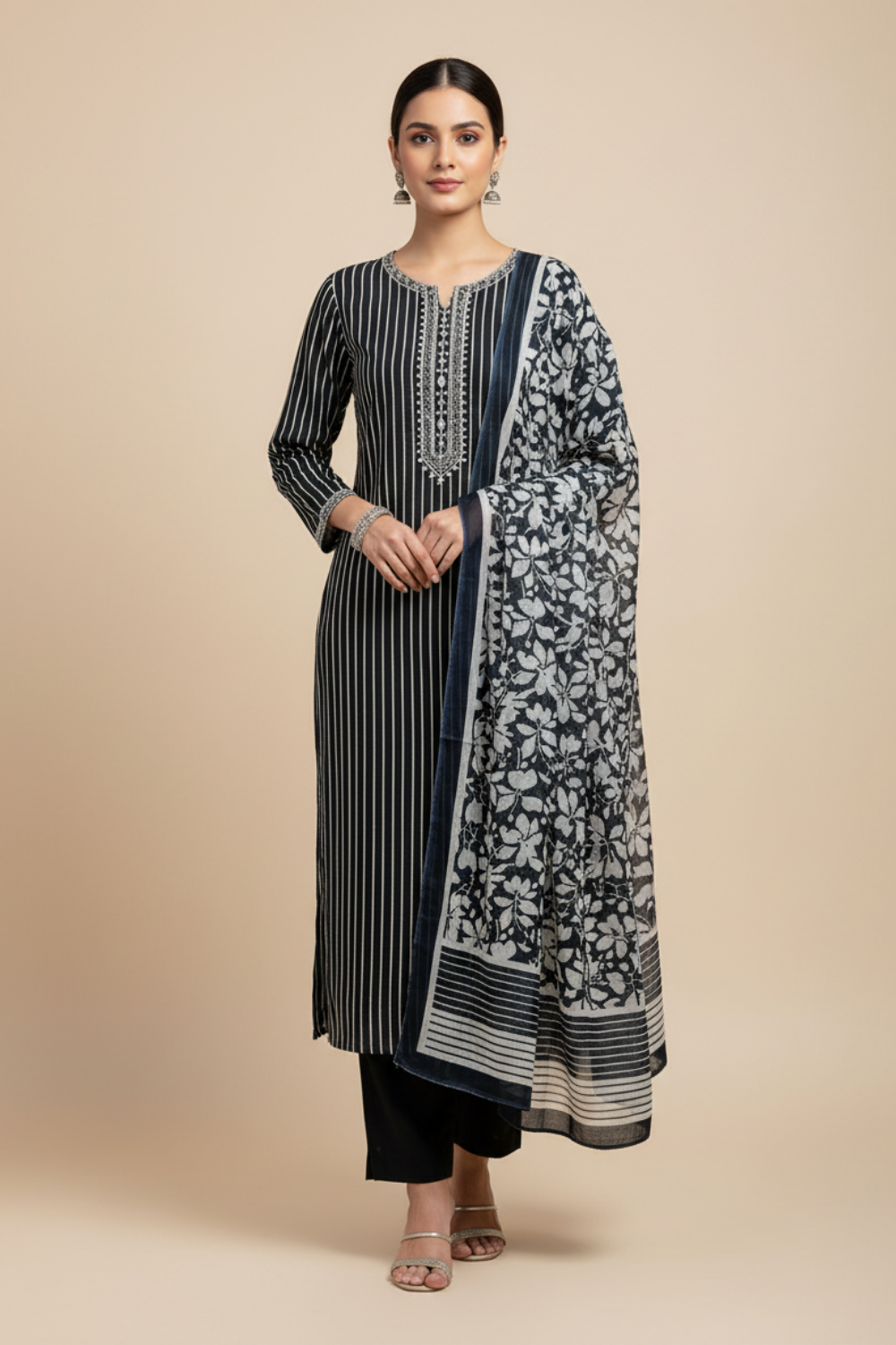Panna Black Cotton Unstitched Salwar Suit With Cotton Dupatta