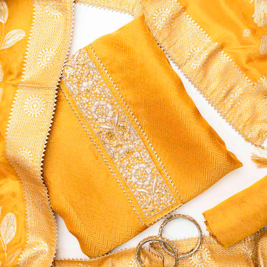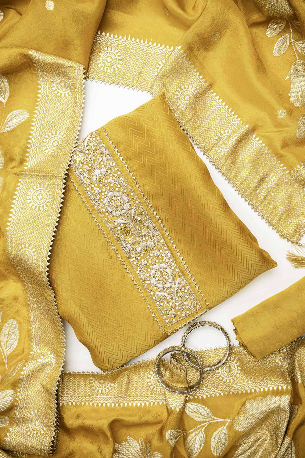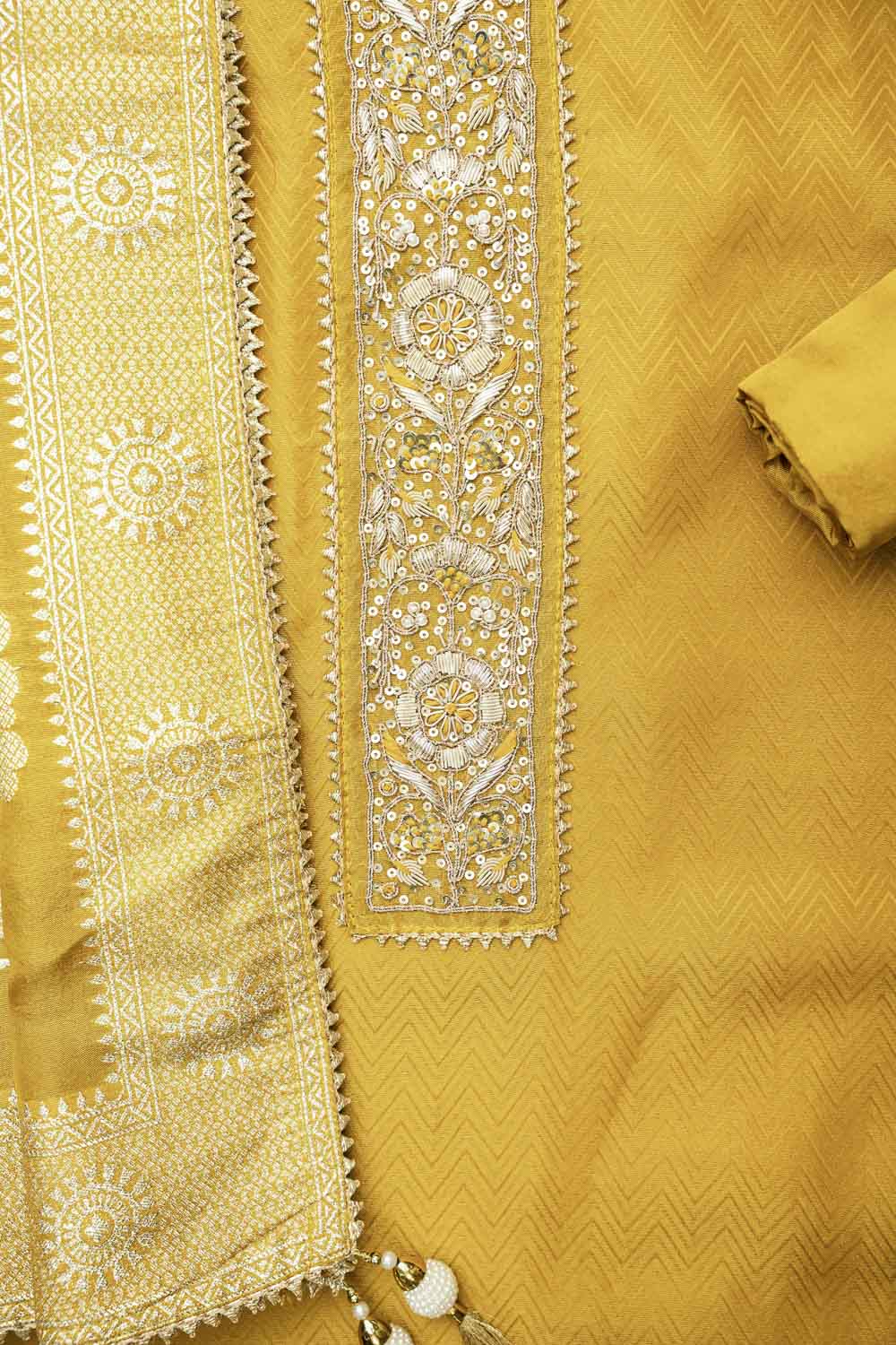 Mustard Organza Tissue Unstitched Salwar Suit With Organza Tissue Dupa – The Panna Shop