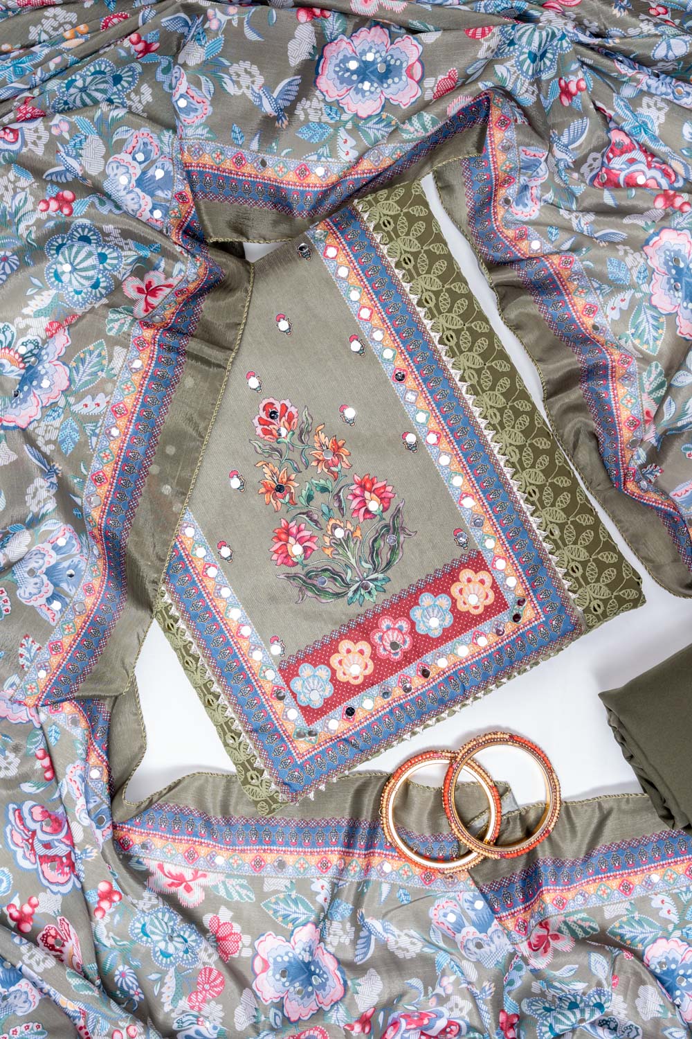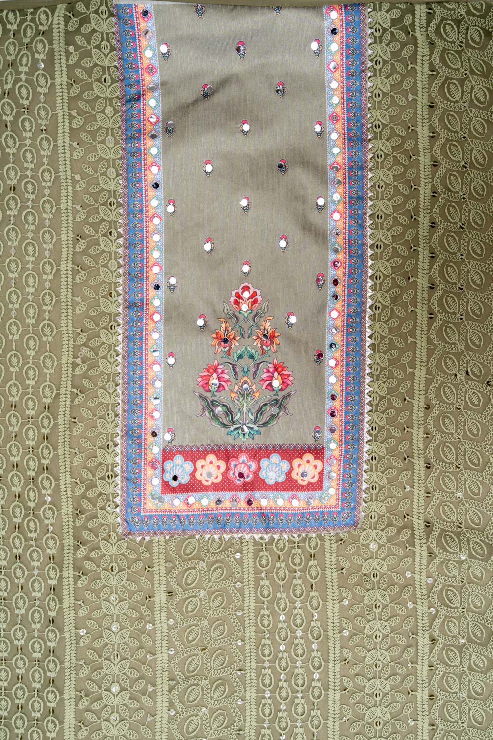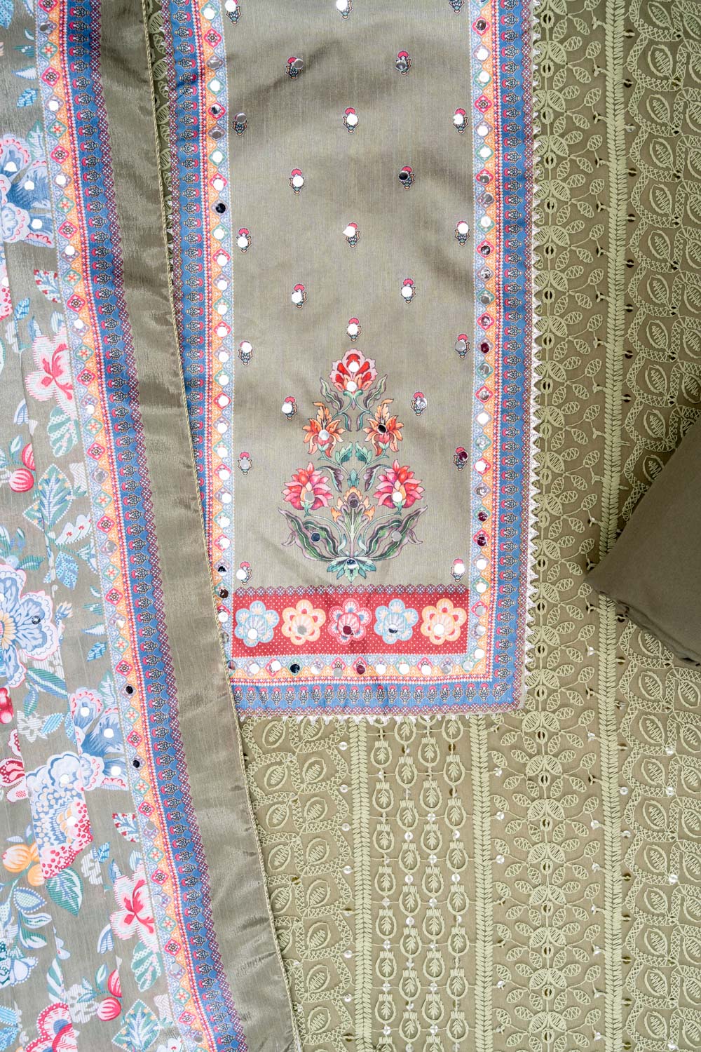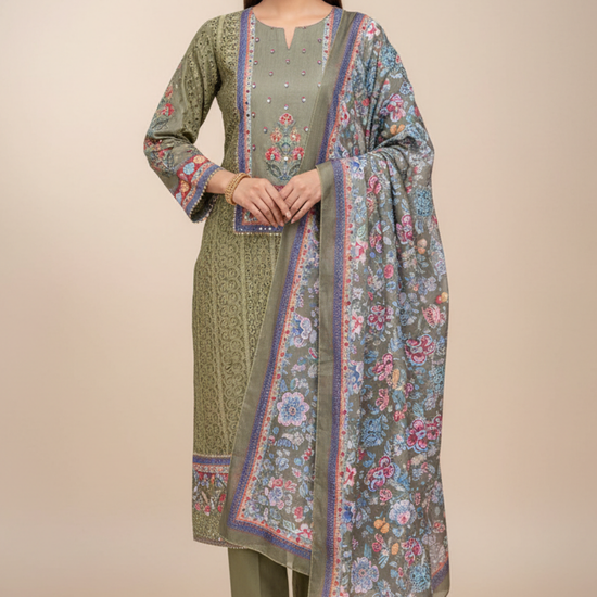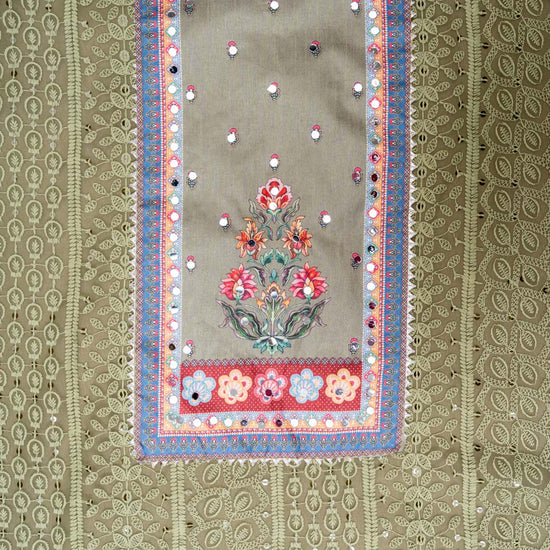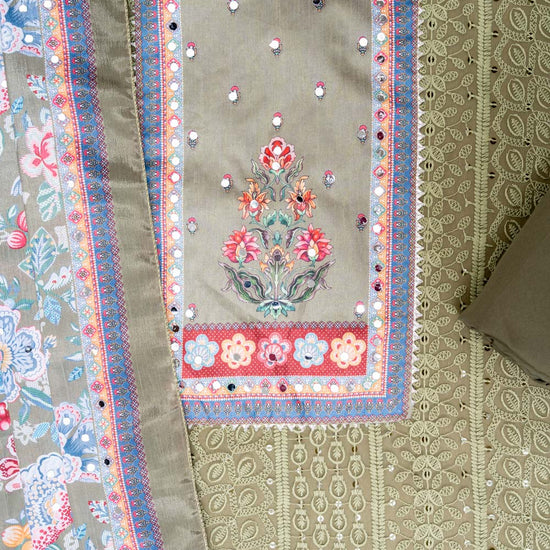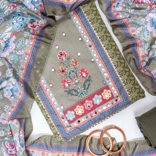 Panna Mehndi Georgette Unstitched Salwar Suit With Chinon Dupatta