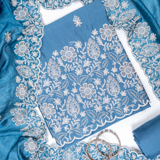 Panna Grey Cotton Unstitched Salwar Suit With Cotton Dupatta