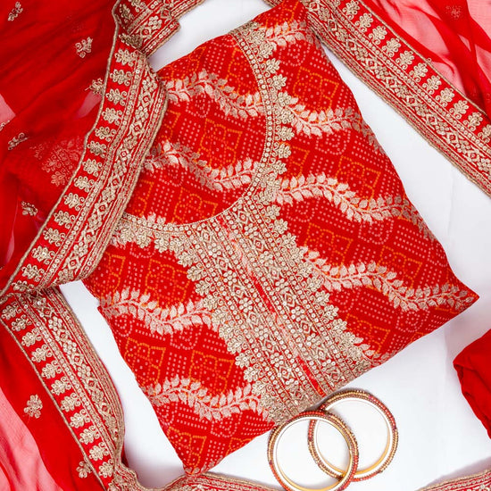Panna Red Georgette Unstitched Salwar Suit With Georgette Dupatta