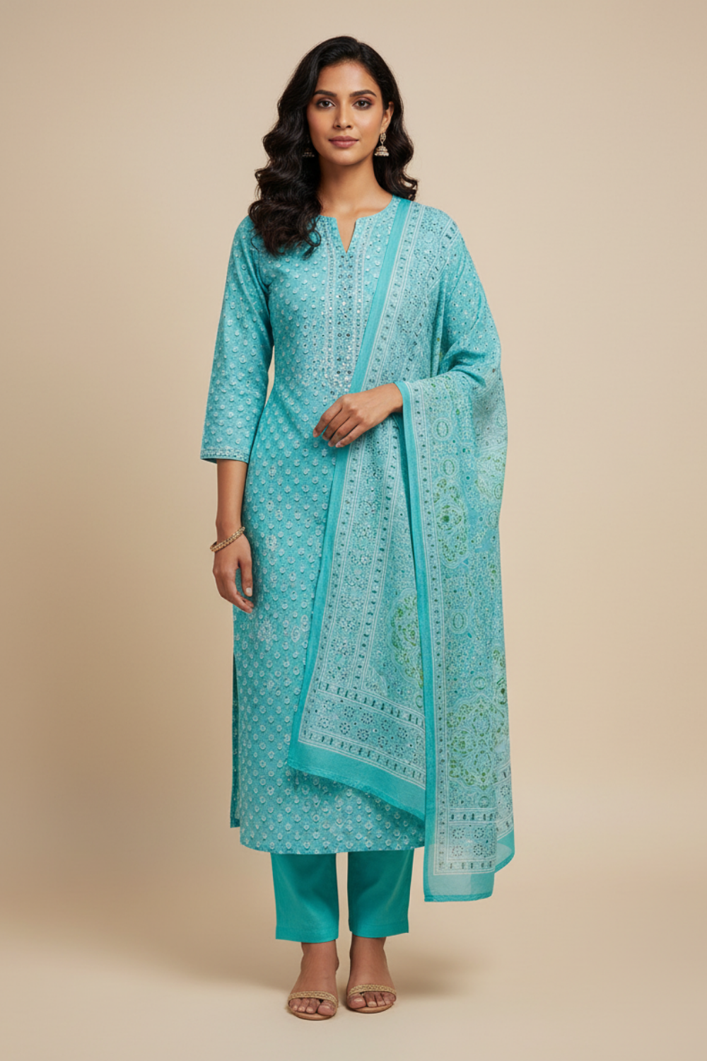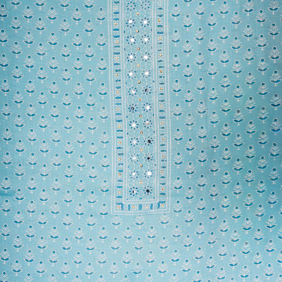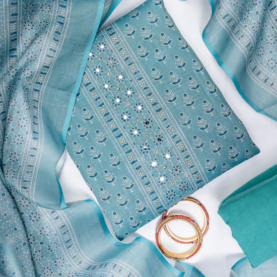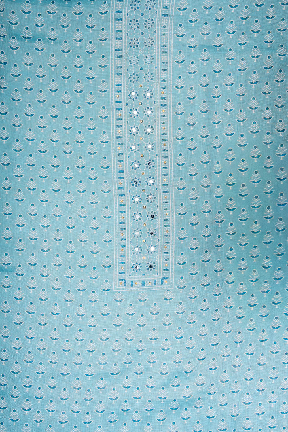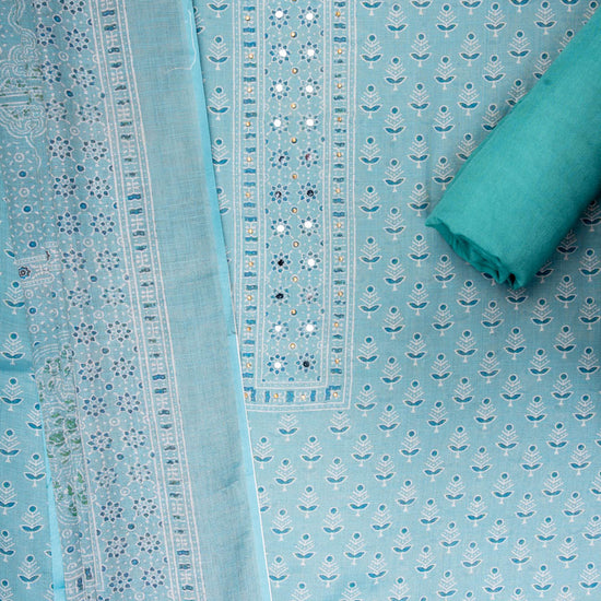 Panna Mint Green Cotton Unstitched Salwar Suit With Cotton Dupatta