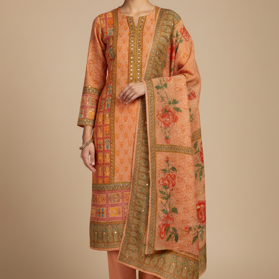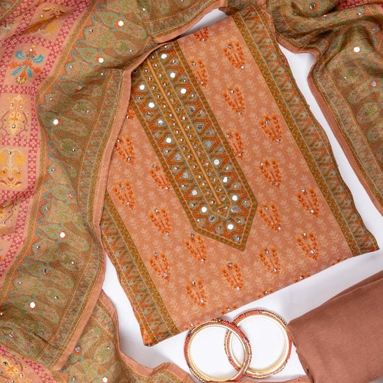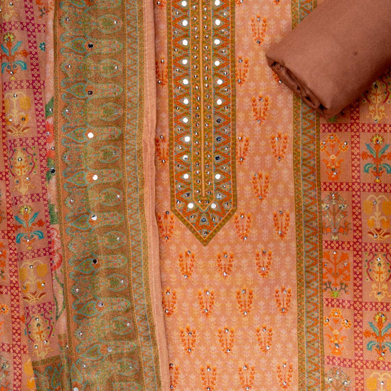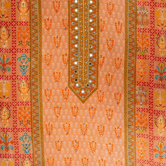 Panna Peach Chiffon Unstitched Salwar Suit With Chiffon Dupatta