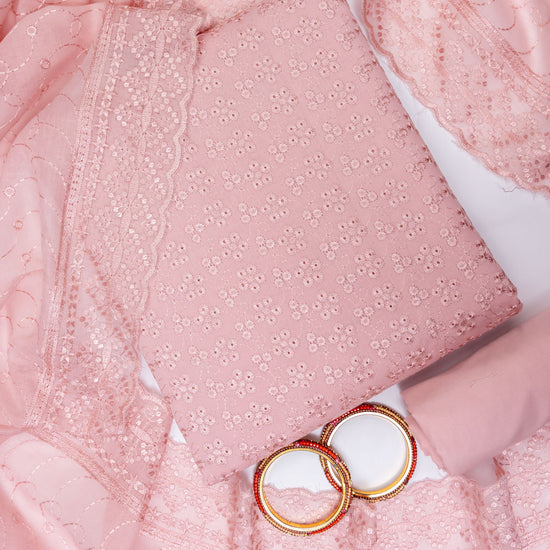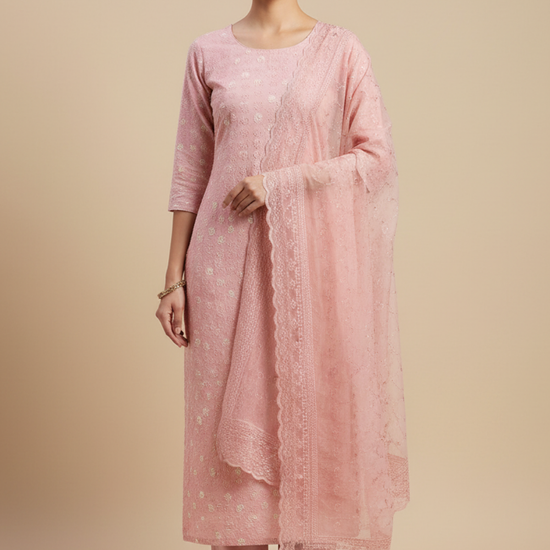 Panna Peach Chanderi Cotton Unstitched Salwar Suit With Cotton Dupatta