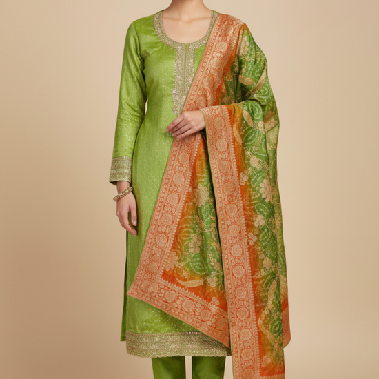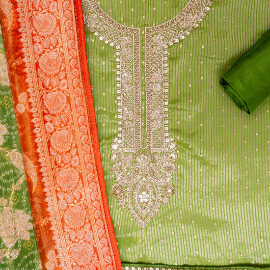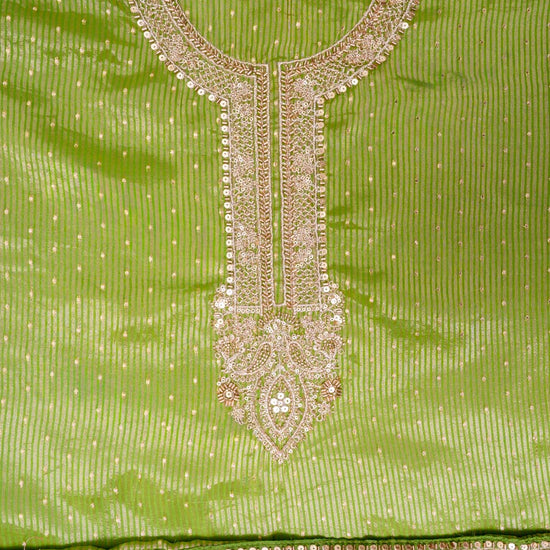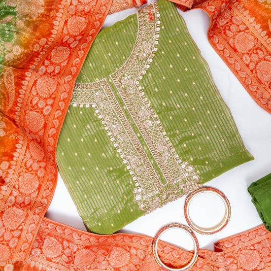 Panna Parrot Organza Unstitched Salwar Suit With Dola Silk Dupatta